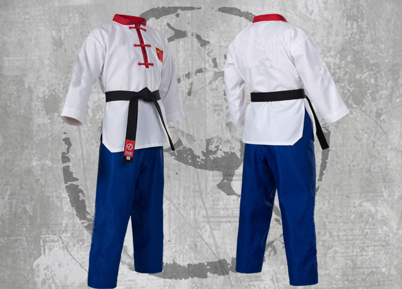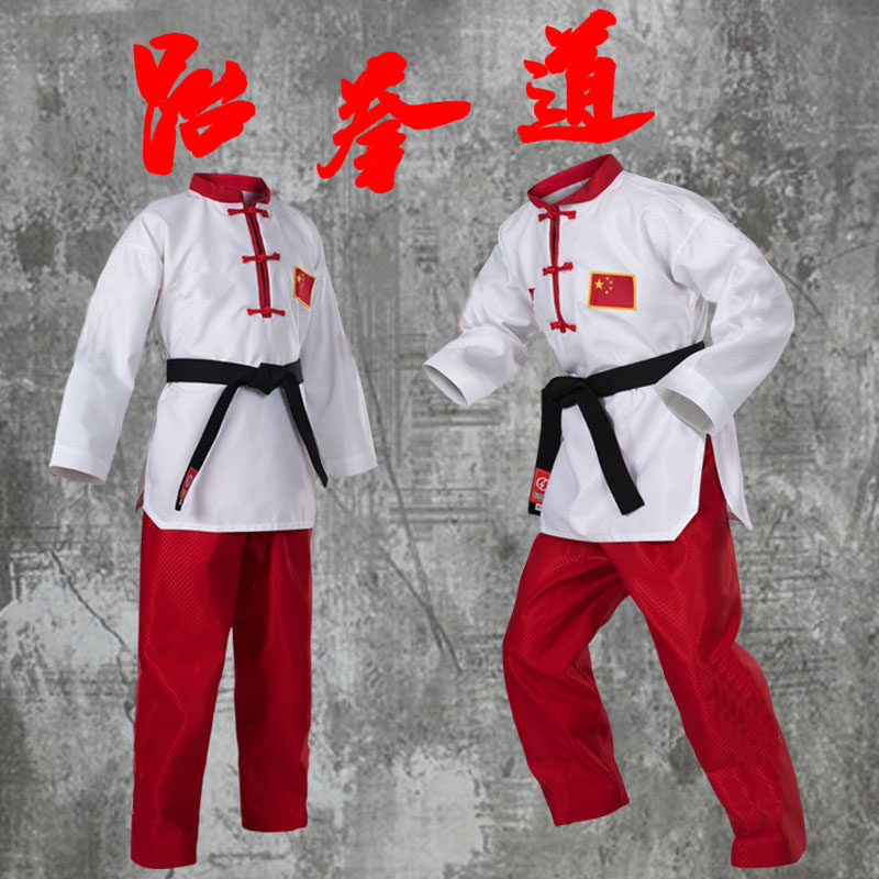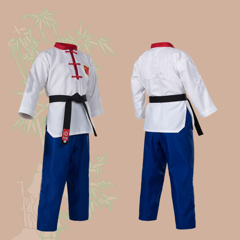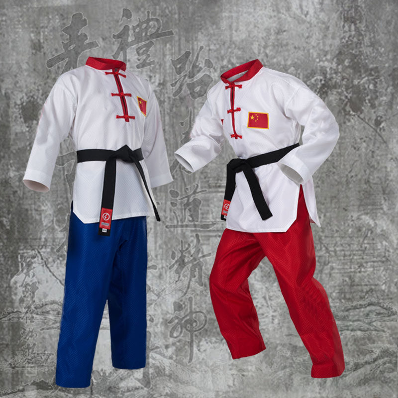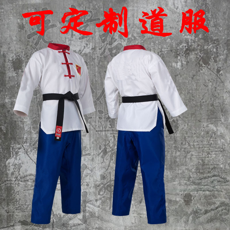 Новая коллекция Тхэквондо мужской Взрослая женщина детские Стерлинговая ткань лето воздухопроницаемый голубой красный Название одежды таможня