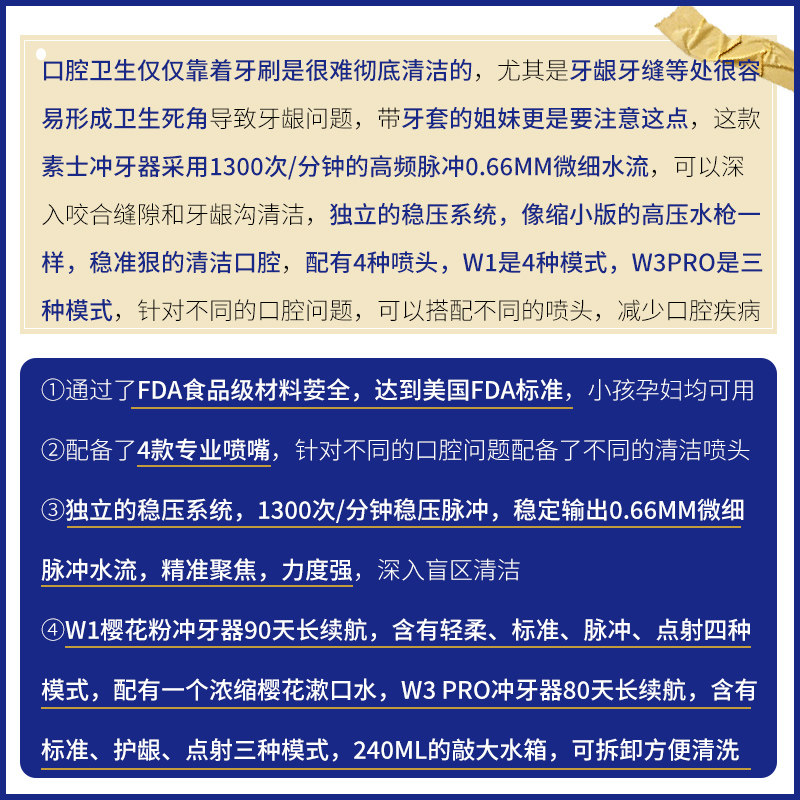 Сержант W3PRO W1 Портативная зубная зубная таритная оральная зубная очистка электрический доступ