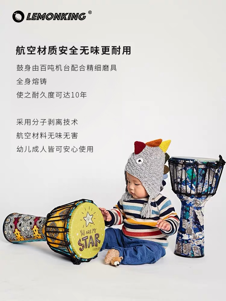 【Tmall】Лимомонкинг детские Ручной барабан дверь Первая школа Маленький 10-дюймовый Лицзян Профессиональный музыкальный инструмент 8,5 дюймового детского сада Африканский барабан