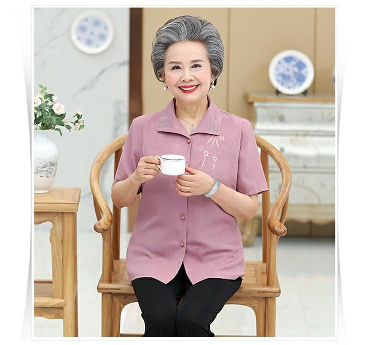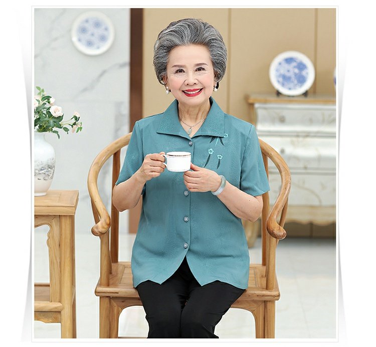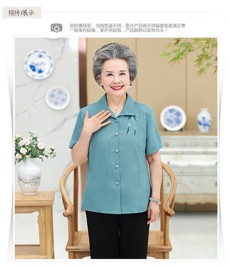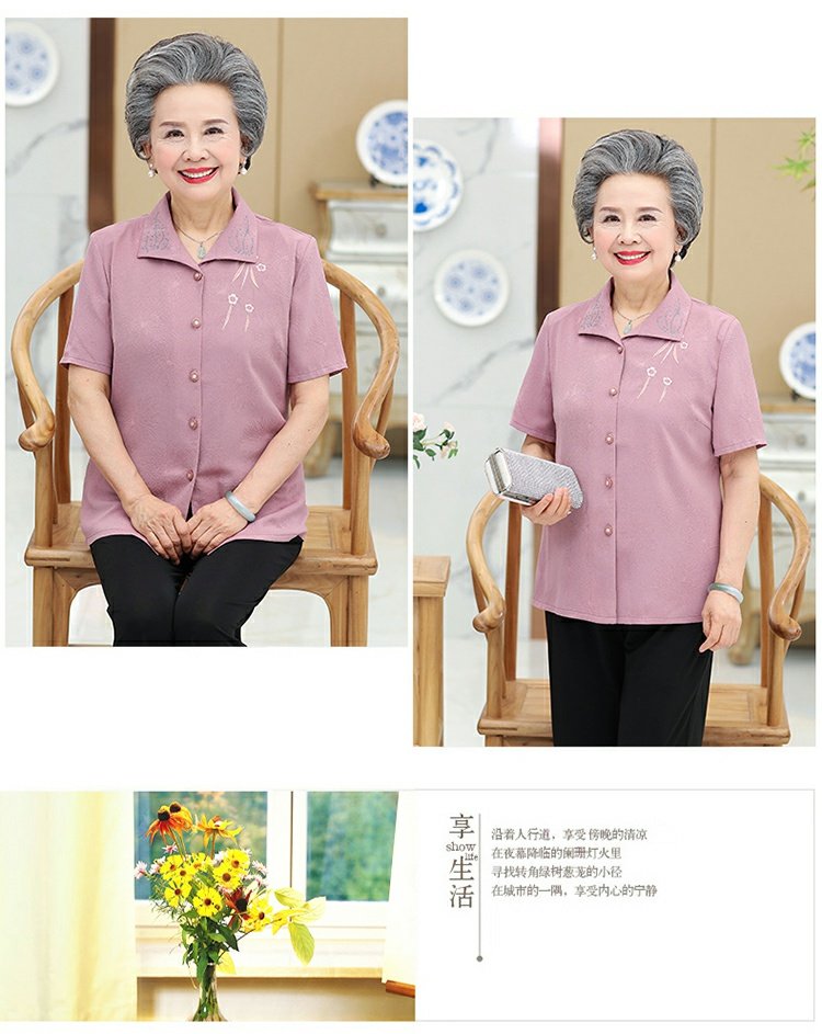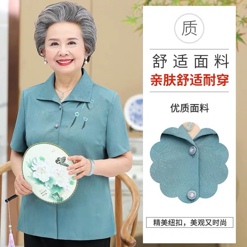 Бабушка Летнее платье короткий рукав комплект 60-70 лет 80 старые женские одежды сорочка Иностранная старость, женщина мать