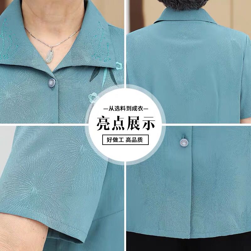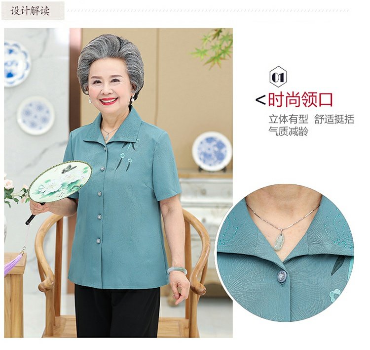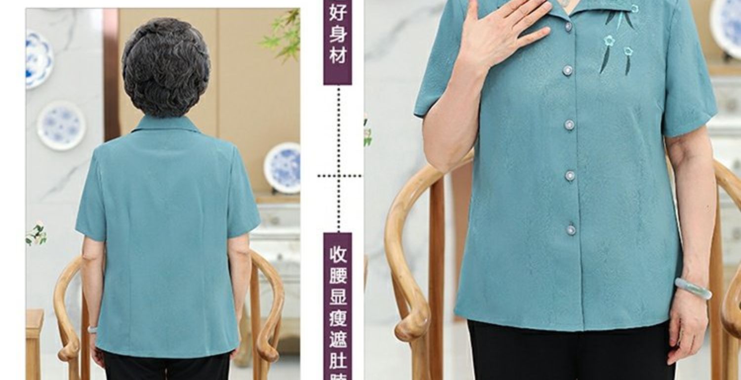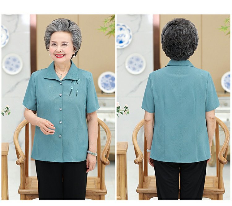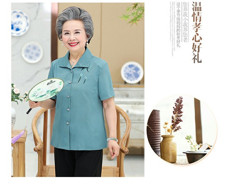 Бабушка Летнее платье короткий рукав комплект 60-70 лет 80 старые женские одежды сорочка Иностранная старость, женщина мать