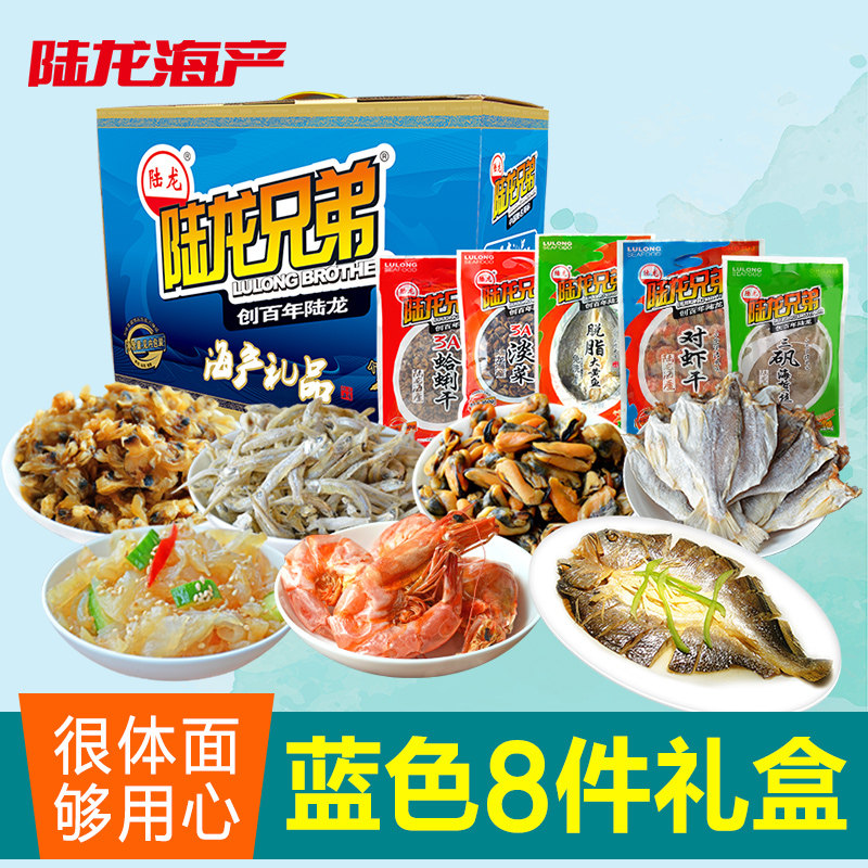 Жушхан Морепродукты Сухие товары подарок пакет Лу длинные братья новый голубой через классический 8 кусочков подарочной коробке B Пакет домашнего Нового года