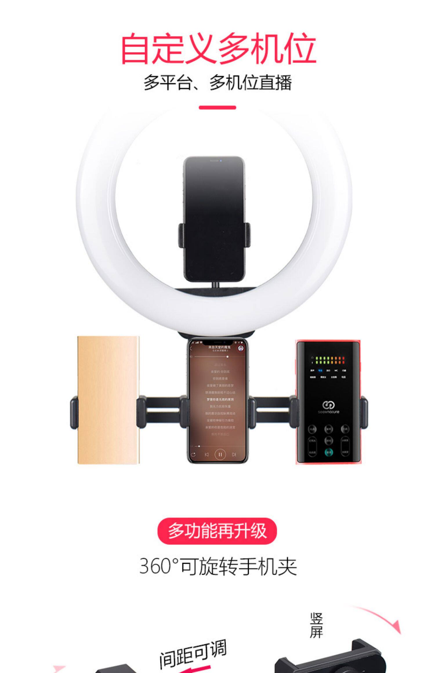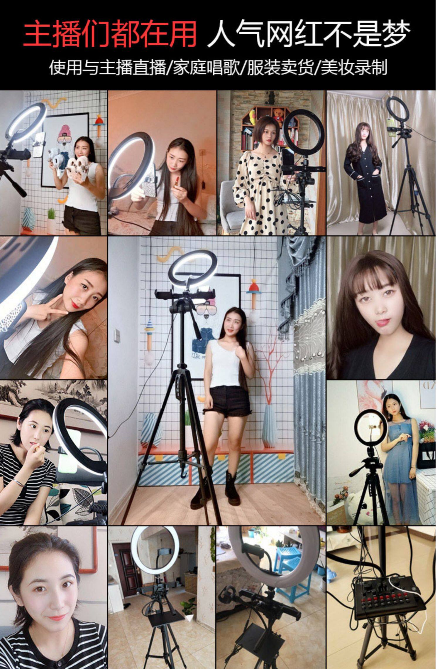 Мобильный телефон живой кронштейн заполнить свет свет сеть красный Объявление Photo Fast Hand Shake Съемка Selfie Artifact Открытый Оборудование для красоты полностью Набор каскадных дань многофункциональных настольных настольных штатив
