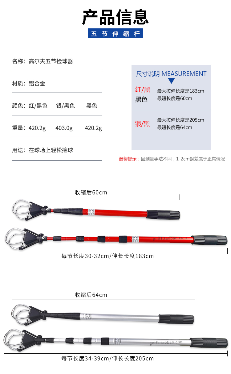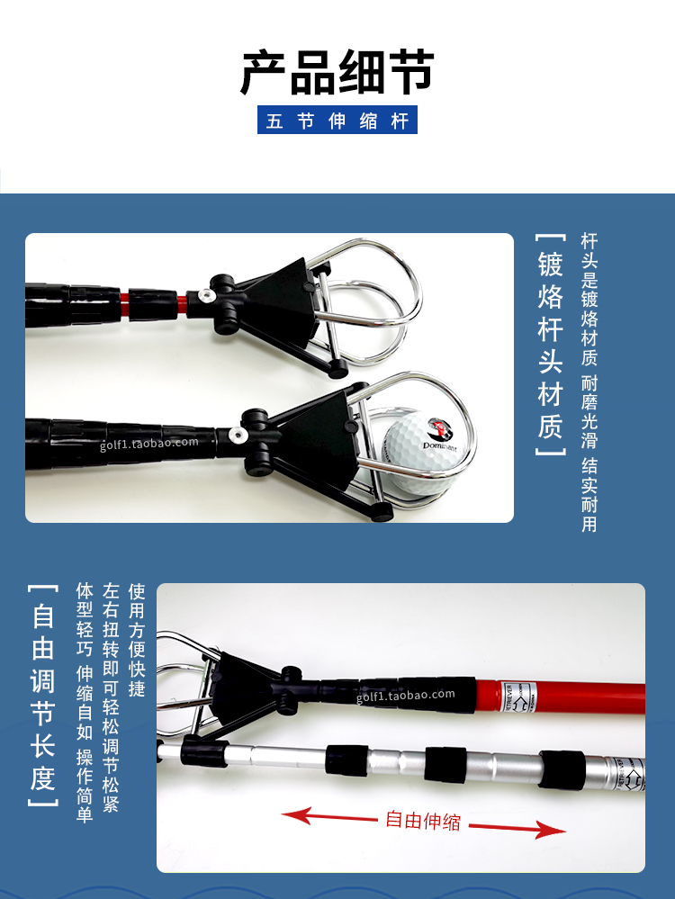 Golf Получение устройства для рыбалки с мячом пять секций могут дразнить и отозвать мяч алюминий 3 цвета поставки стадиона сплавного стержня.