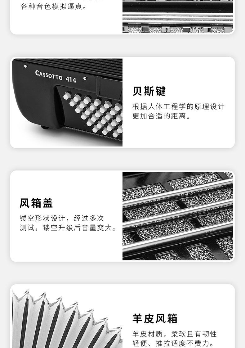Чемпион Германии по импорту 120 басовых четырехрядных пружинных профессионалов, играющих на эхо-аккордеоне Cassotto-414