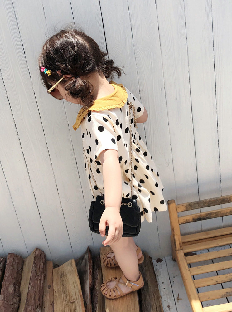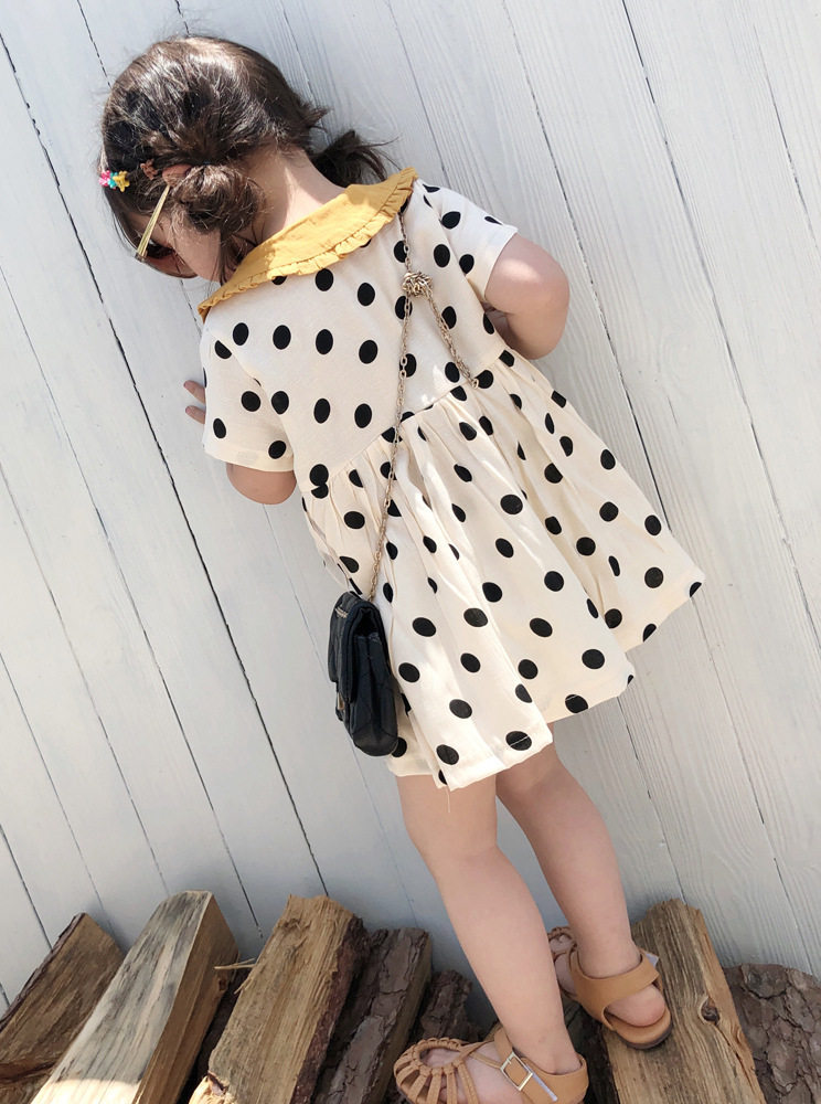 Лето 2021 г. новая коллекция на девочку Одеваем детей детские в горох Кукольное платье с воротником модные для маленькой принцессы Юбка6565