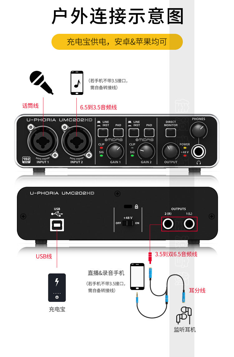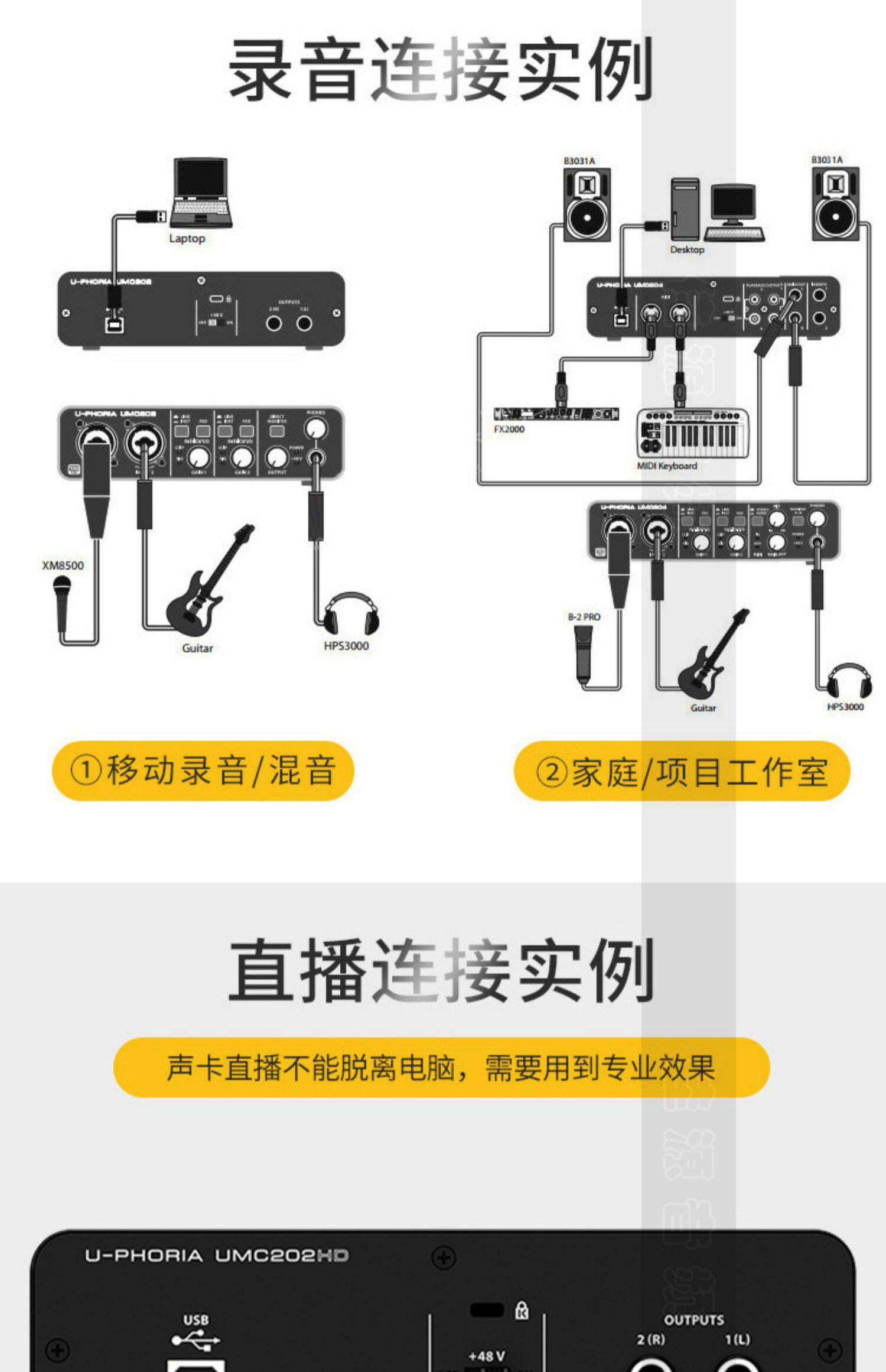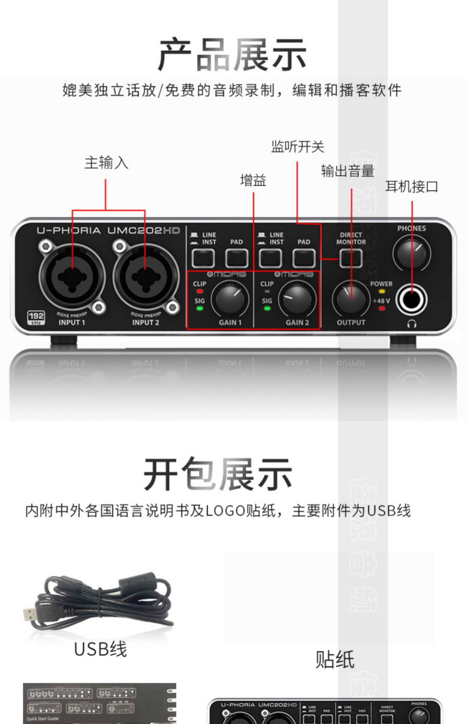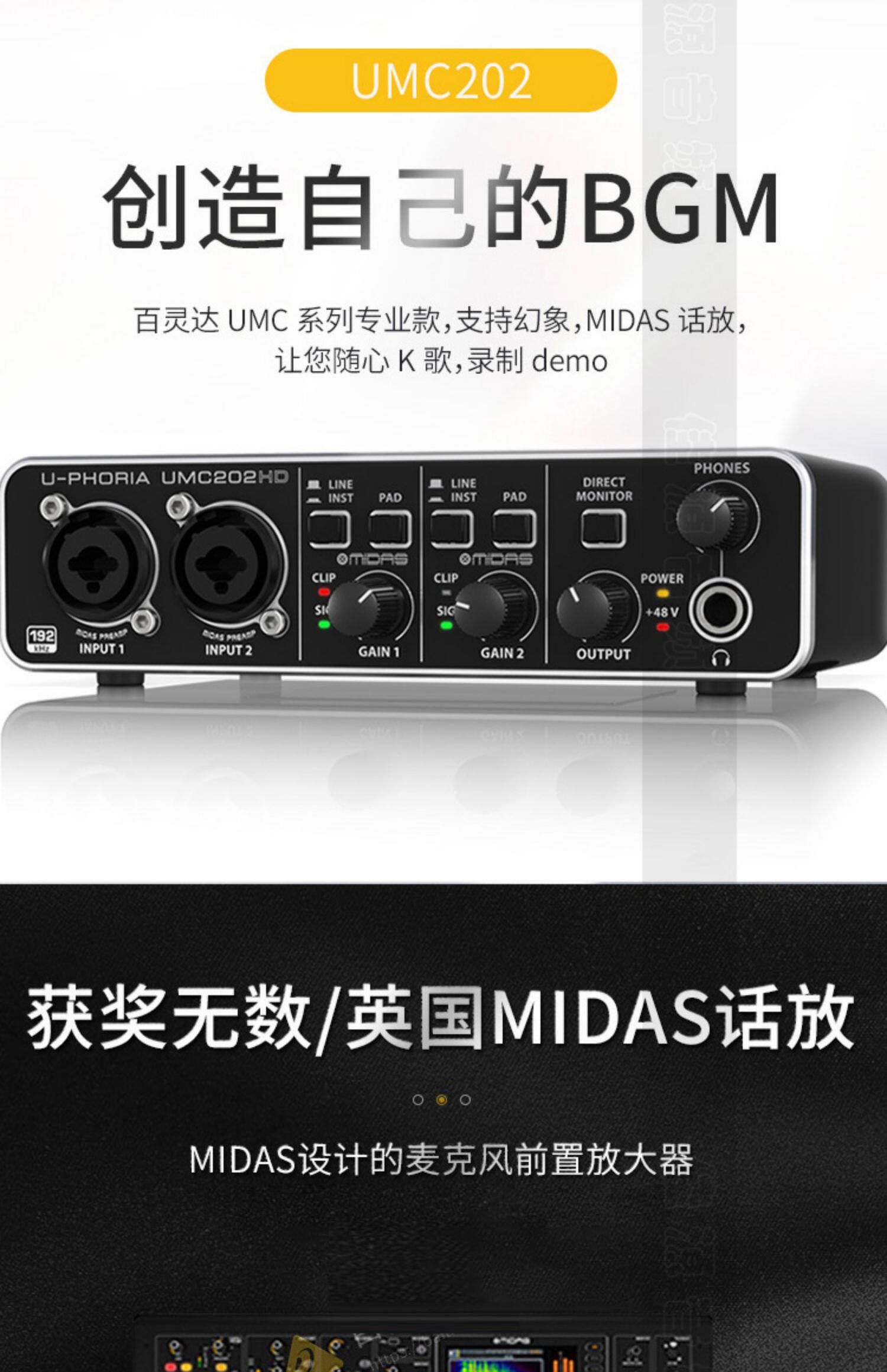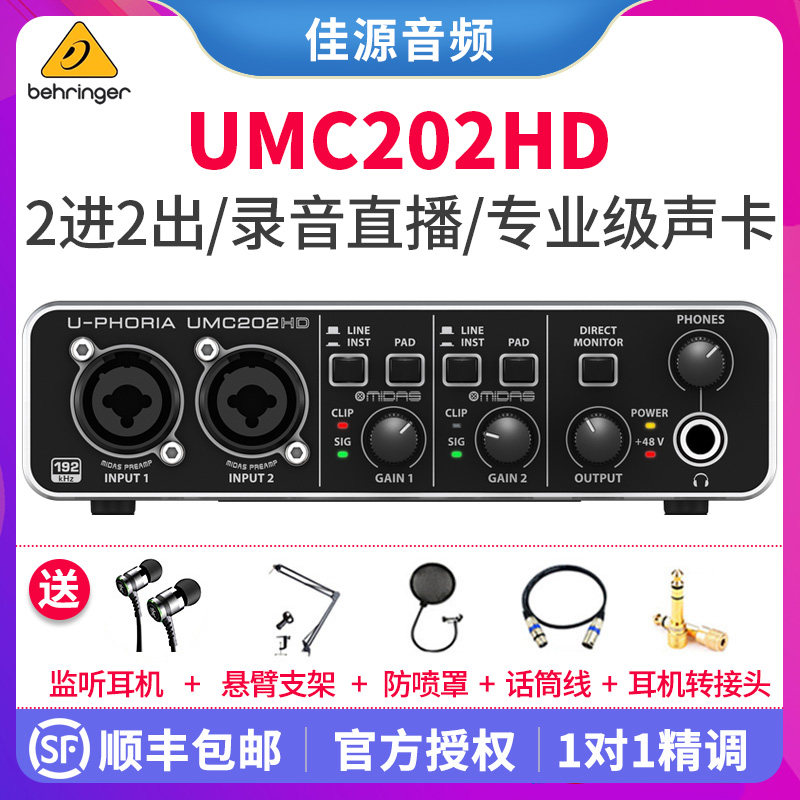 Behringer / ba lida umc202hd внешний Запись гитарной звуковой карты Live K Singer Computer Universal