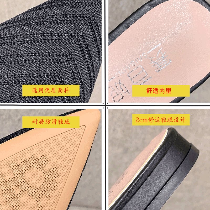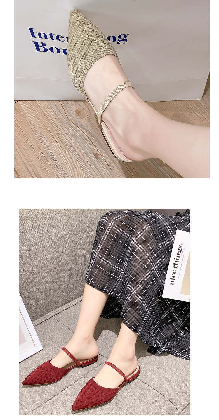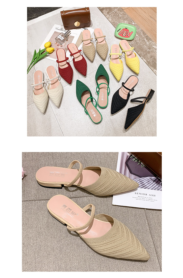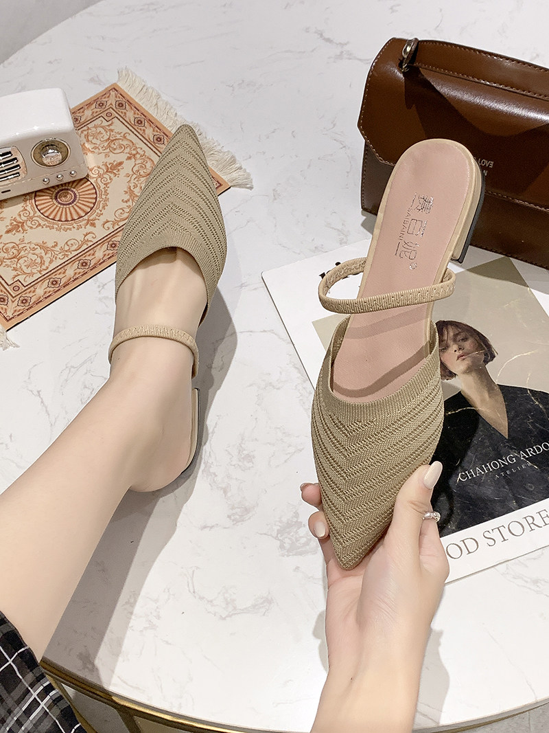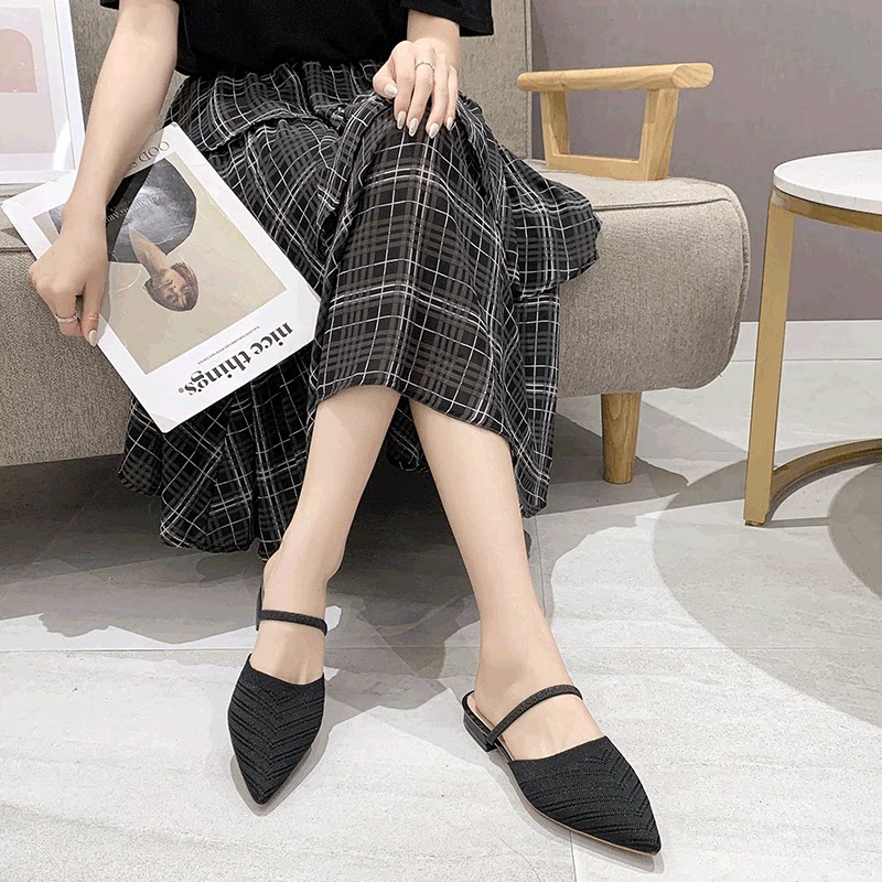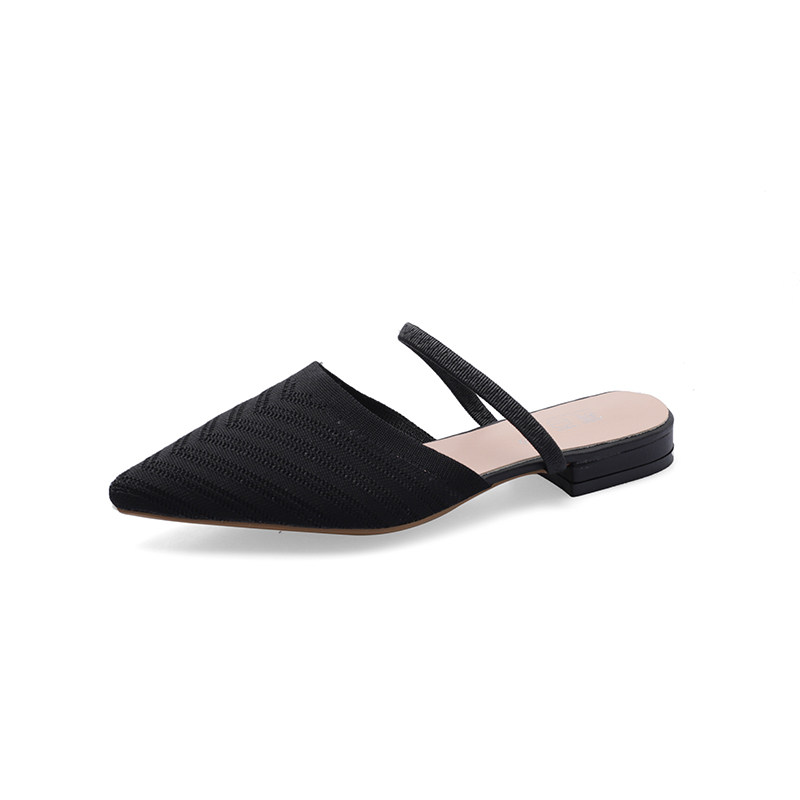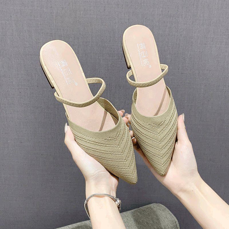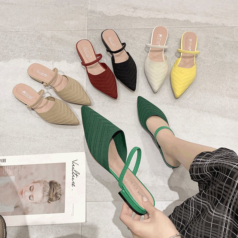 Без После ленивой обуви женщины 2021 лето новая коллекция Носить педаль трикотажный тапки с острым носом на плоской подошве Мюллер