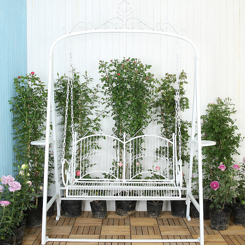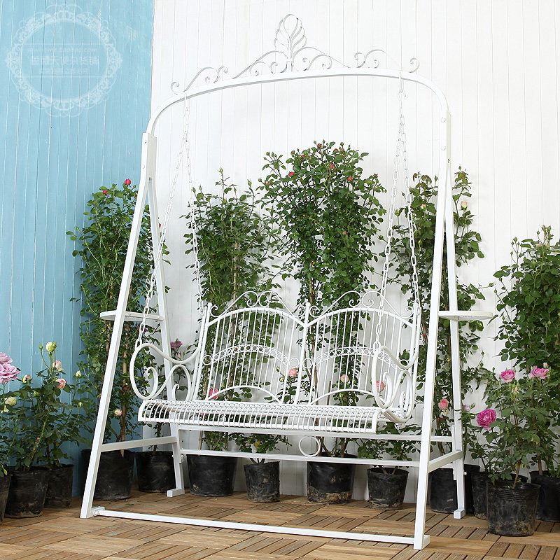 Американская деревня Сяоцин новый Кованое железо белый Открытая терраса-патио с двойными качелями для отдыха Кресло-качалка сиденье