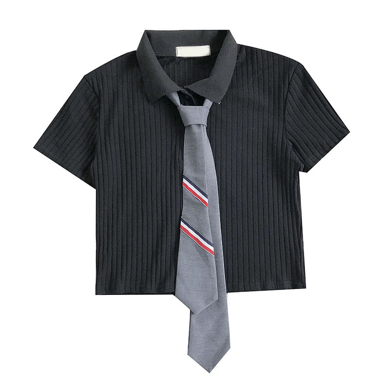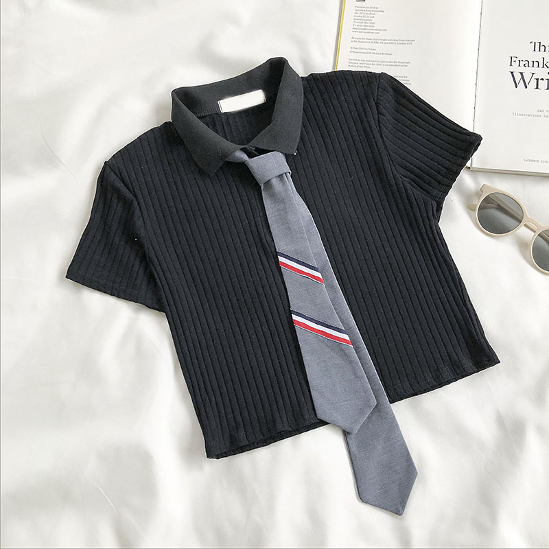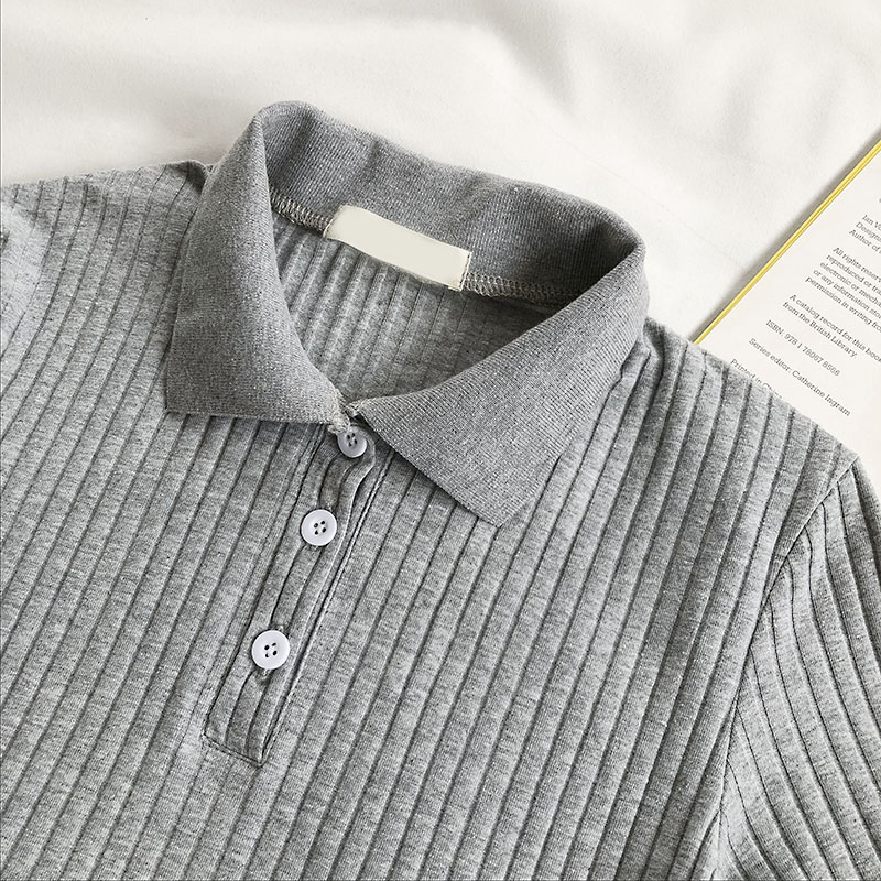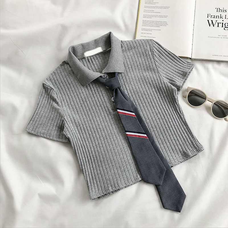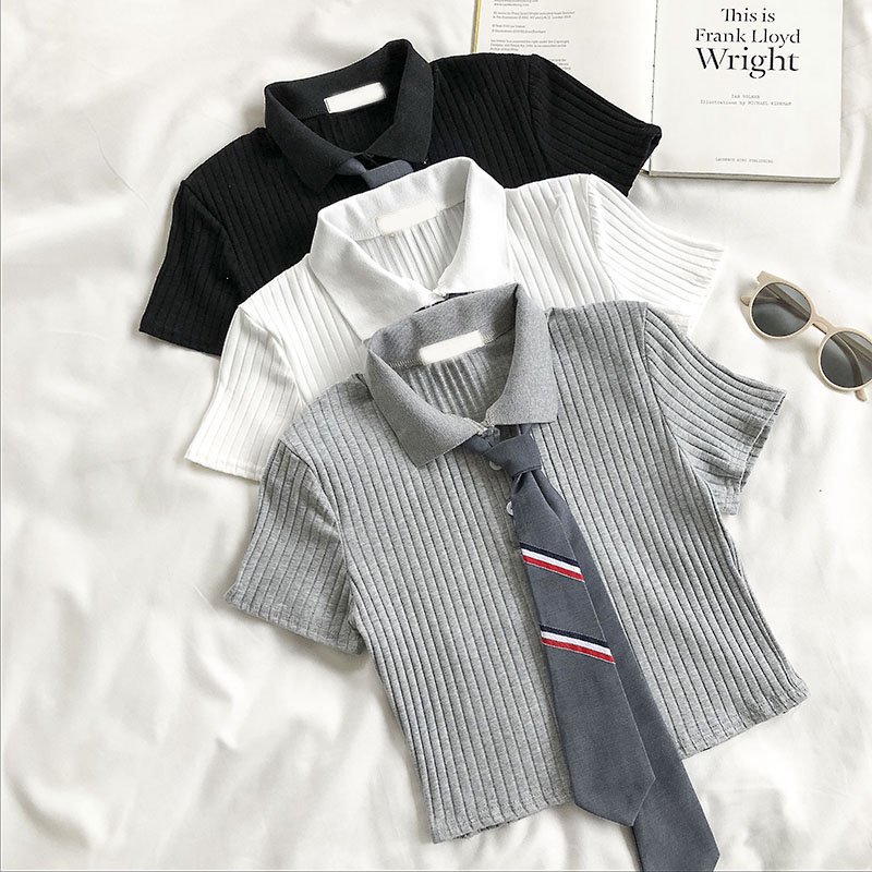 Корейская версия приталенный короткий Пупок трикотажный Подметание лета 2022. новая коллекция популярный Ошейник PLO короткий рукав верх Прилив