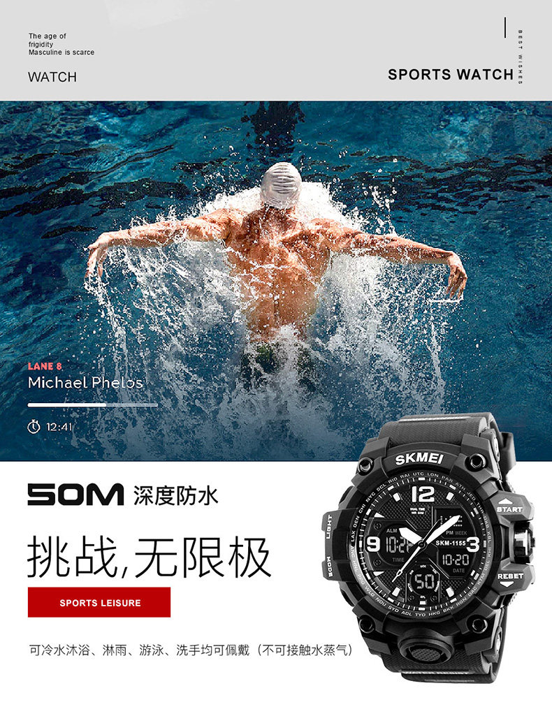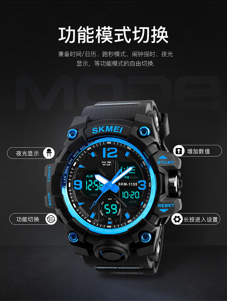 Время, чтобы сделать часы мужской Студенты средней школы младшей школы модные Оборудование спецназа ночной светлый спорт водонепроницаемый Подросток электронные часы