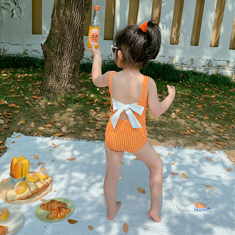Корейский детские Купальники клетчатый женский бантики Соединенные купальники на девочку Небольшой для маленькой принцессы детские Милые купальники