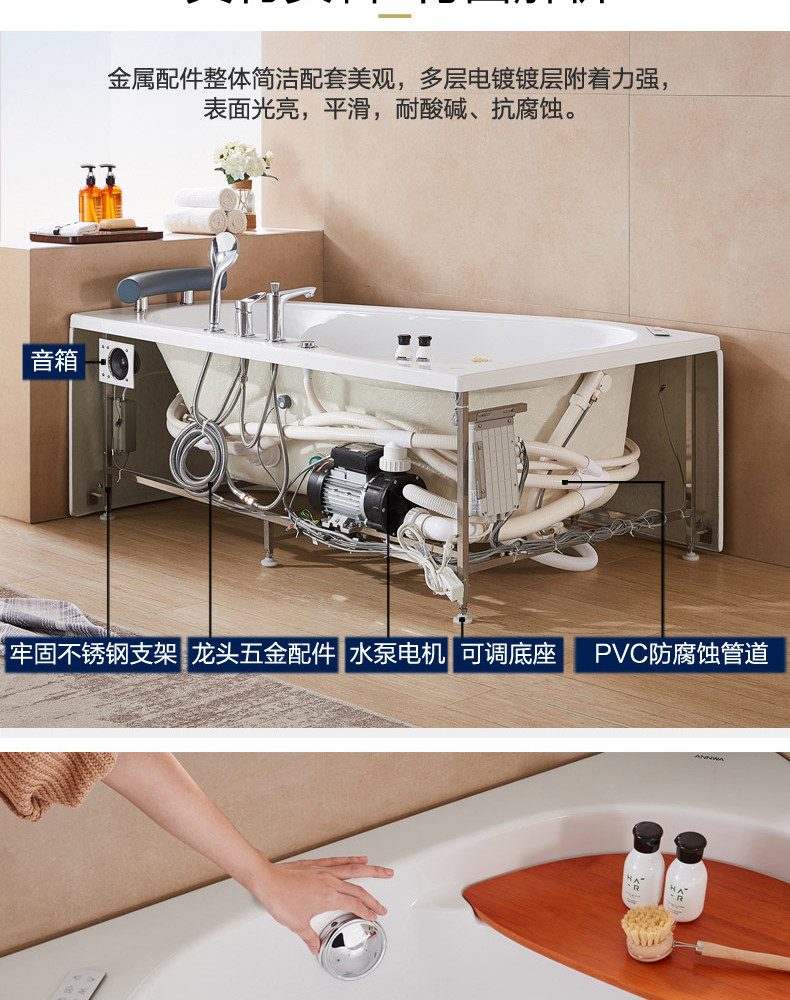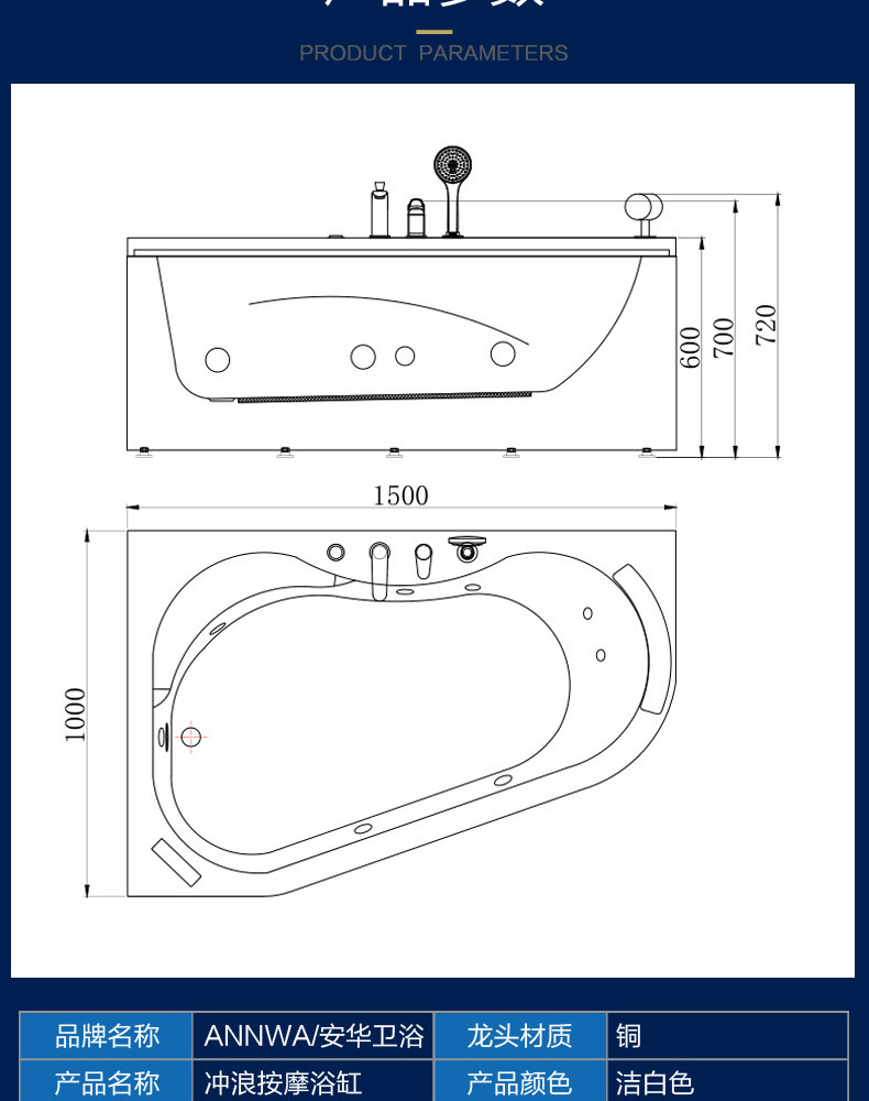 Аньхуа сантехнический треугольник ванна официальный Флагманский бассейн для взрослых наборы Массаж 1,5 метра N9C1509SQ Ванна