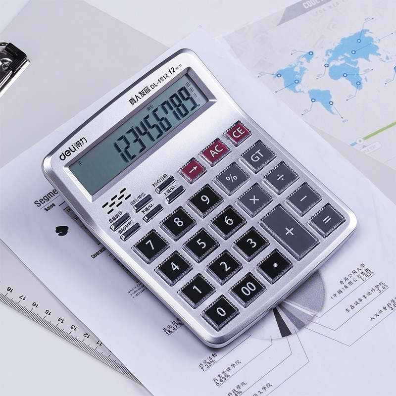 Deli Voice Calculator Real Pery произношение произношения офиса Бухгалтерский учет для кристалл кнопка Портативный большой экран бизнес-компьютеров