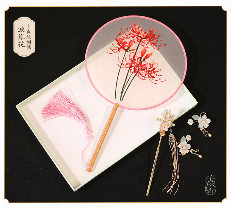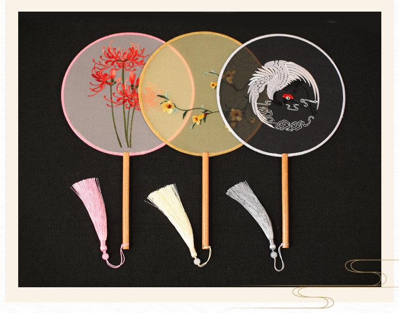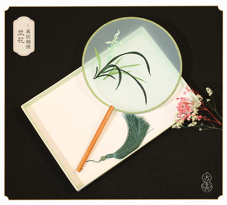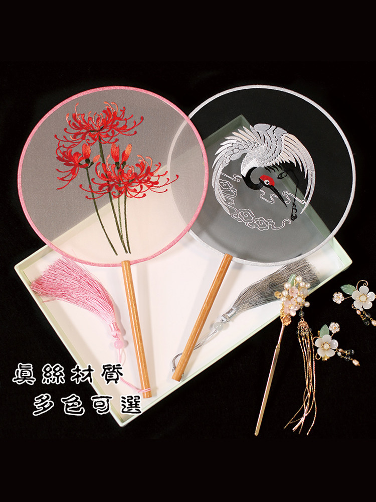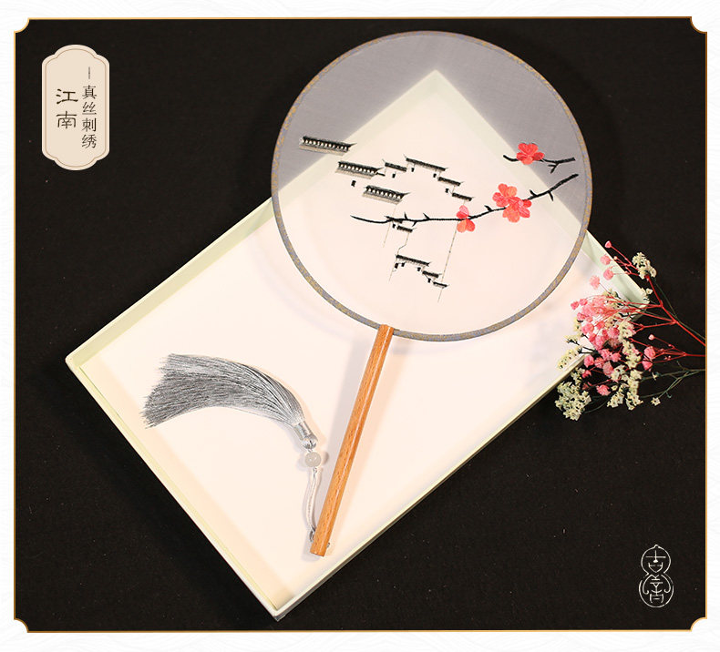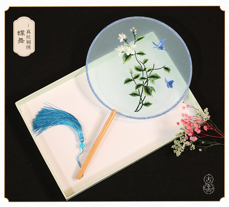 Jinde китайский стиль женский вышивка пляж пляж цветок девушка винтаж Palace Fan Hanfu, но вентилятор без ветер