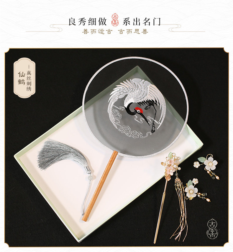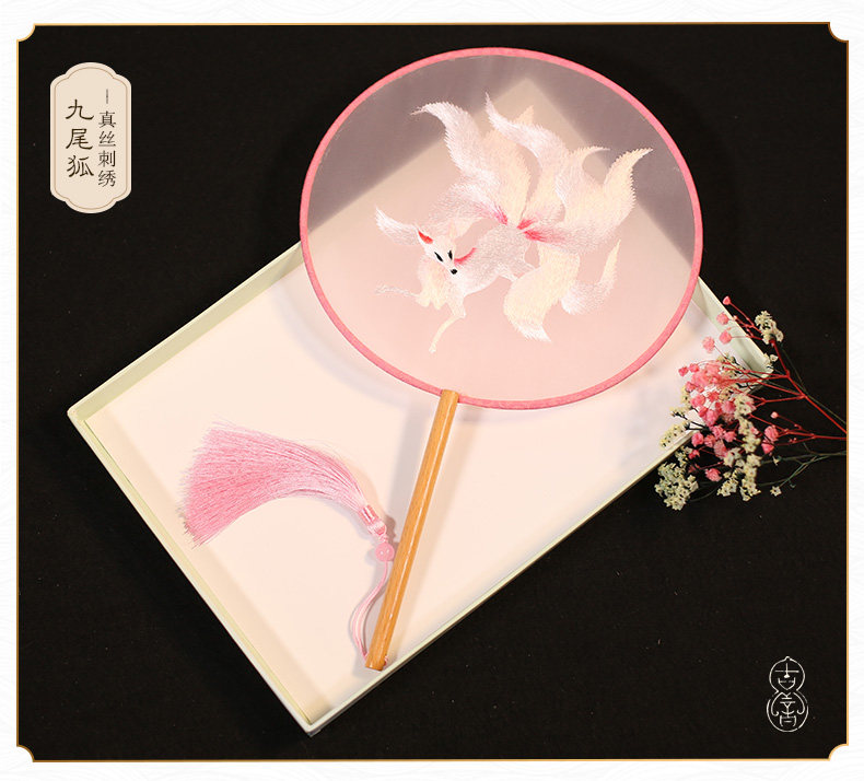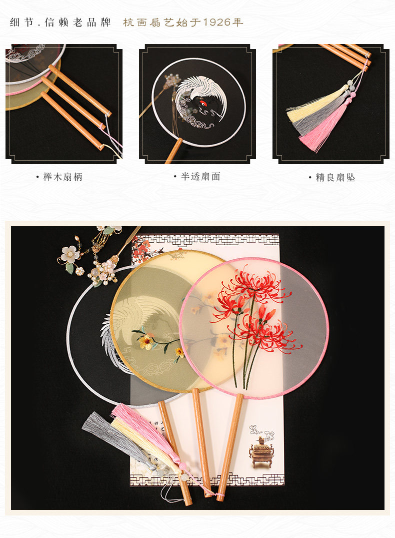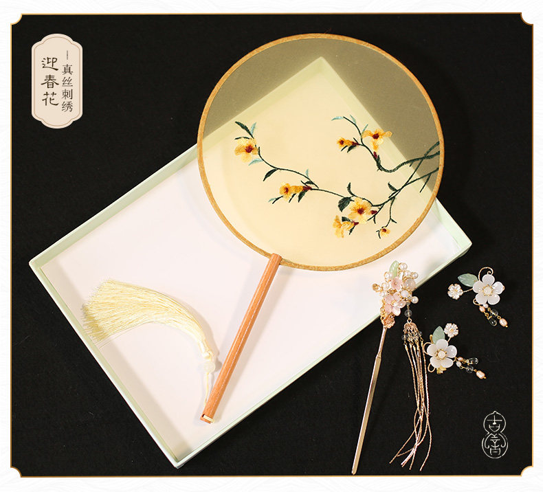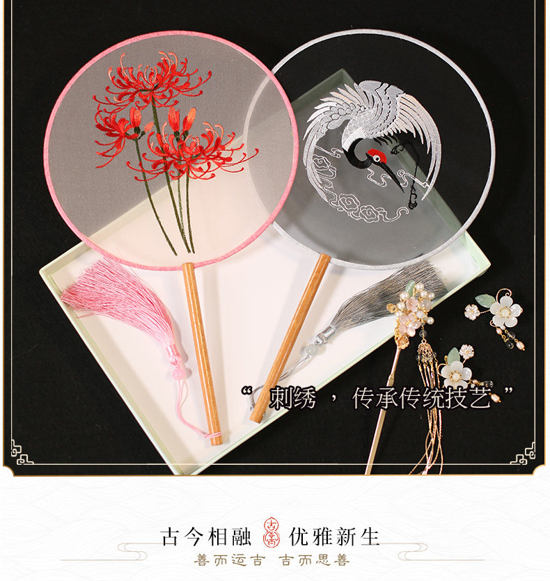Jinde китайский стиль женский вышивка пляж пляж цветок девушка винтаж Palace Fan Hanfu, но вентилятор без ветер