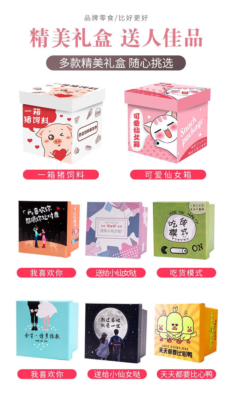 7 XIXI День Святого Валентина Liangpin Shop Pig Feed Feed Snack Dist пакет Коробка коробок для отдыха Еда дешевая