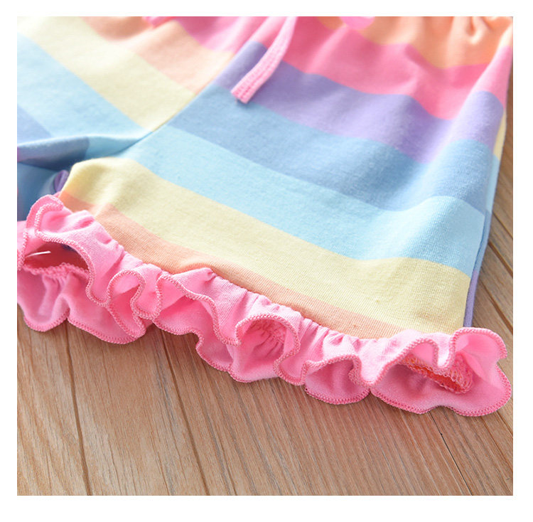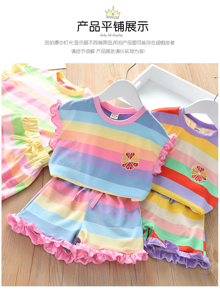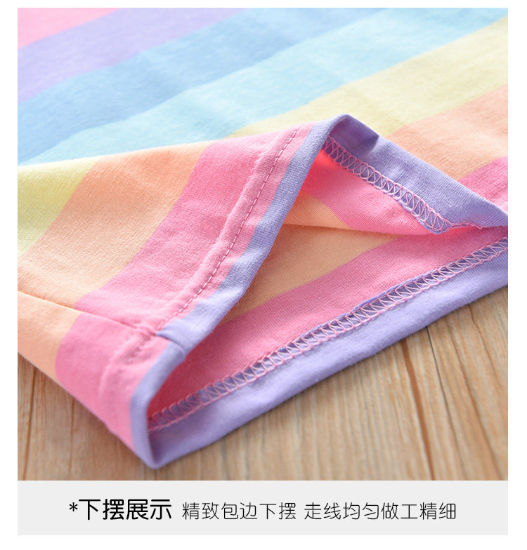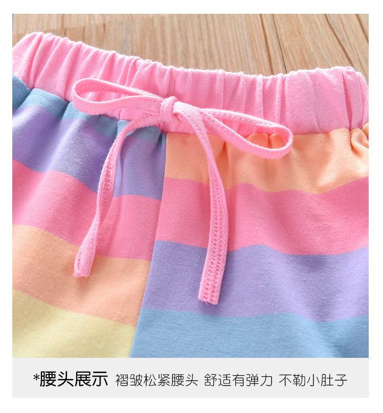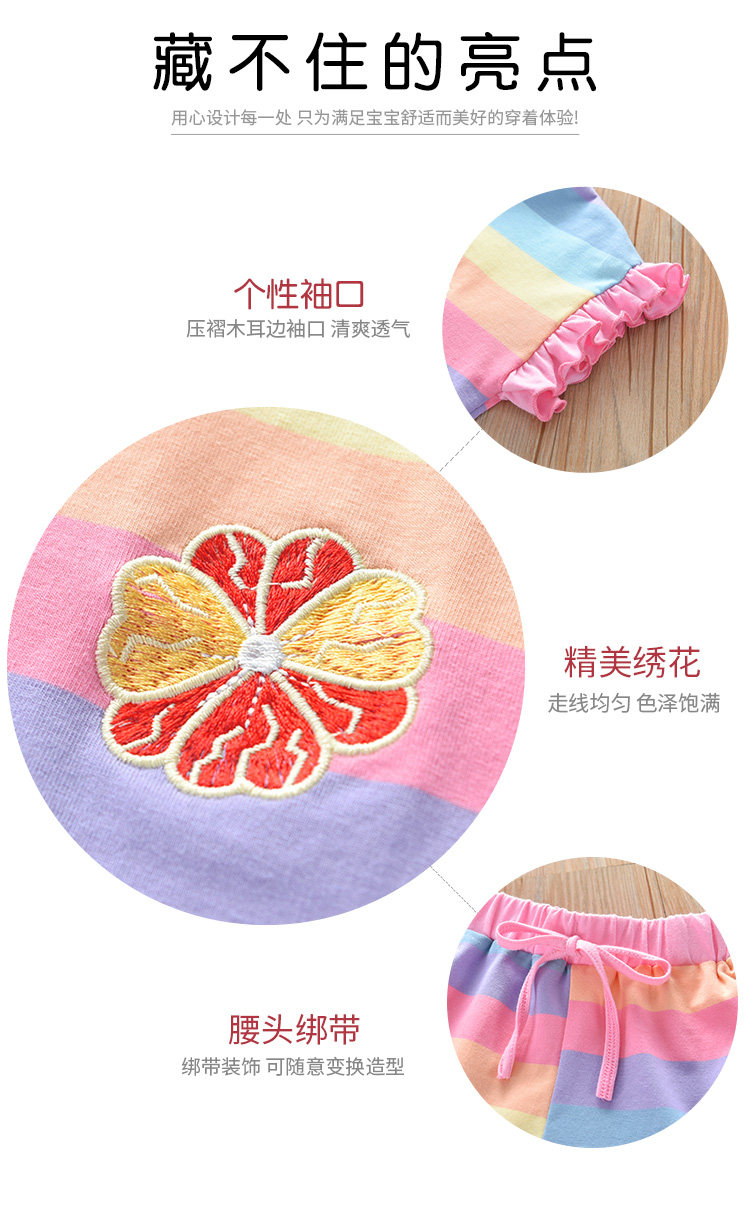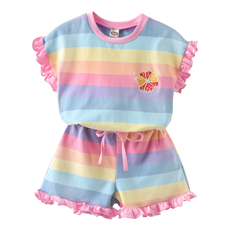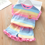 Детские лето полосатый принт для отдыха комплект новая коллекция на девочку Деревянная футболка уха + шорты два наборы детские Пакет