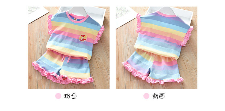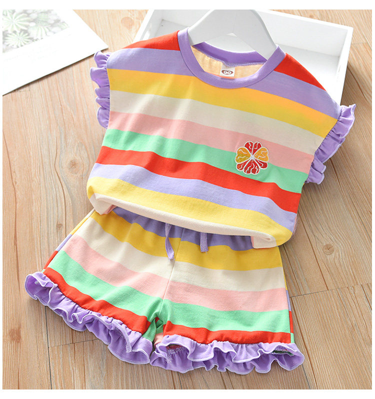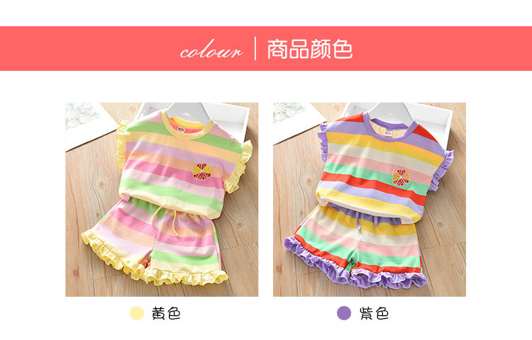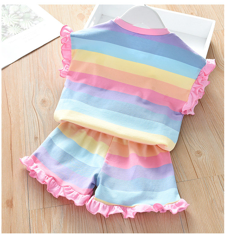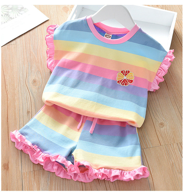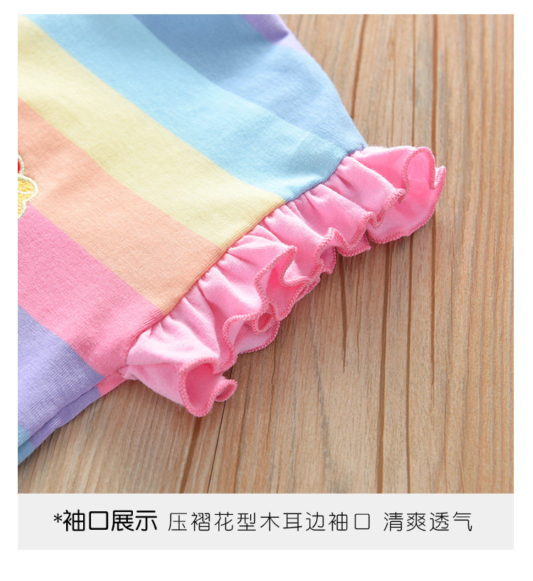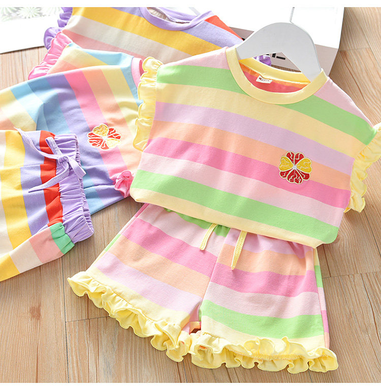 Детские лето полосатый принт для отдыха комплект новая коллекция на девочку Деревянная футболка уха + шорты два наборы детские Пакет