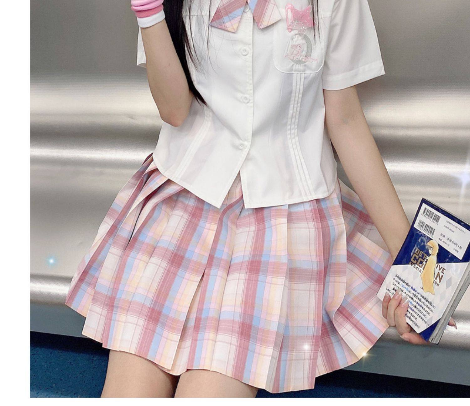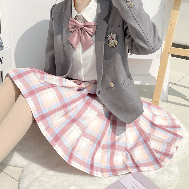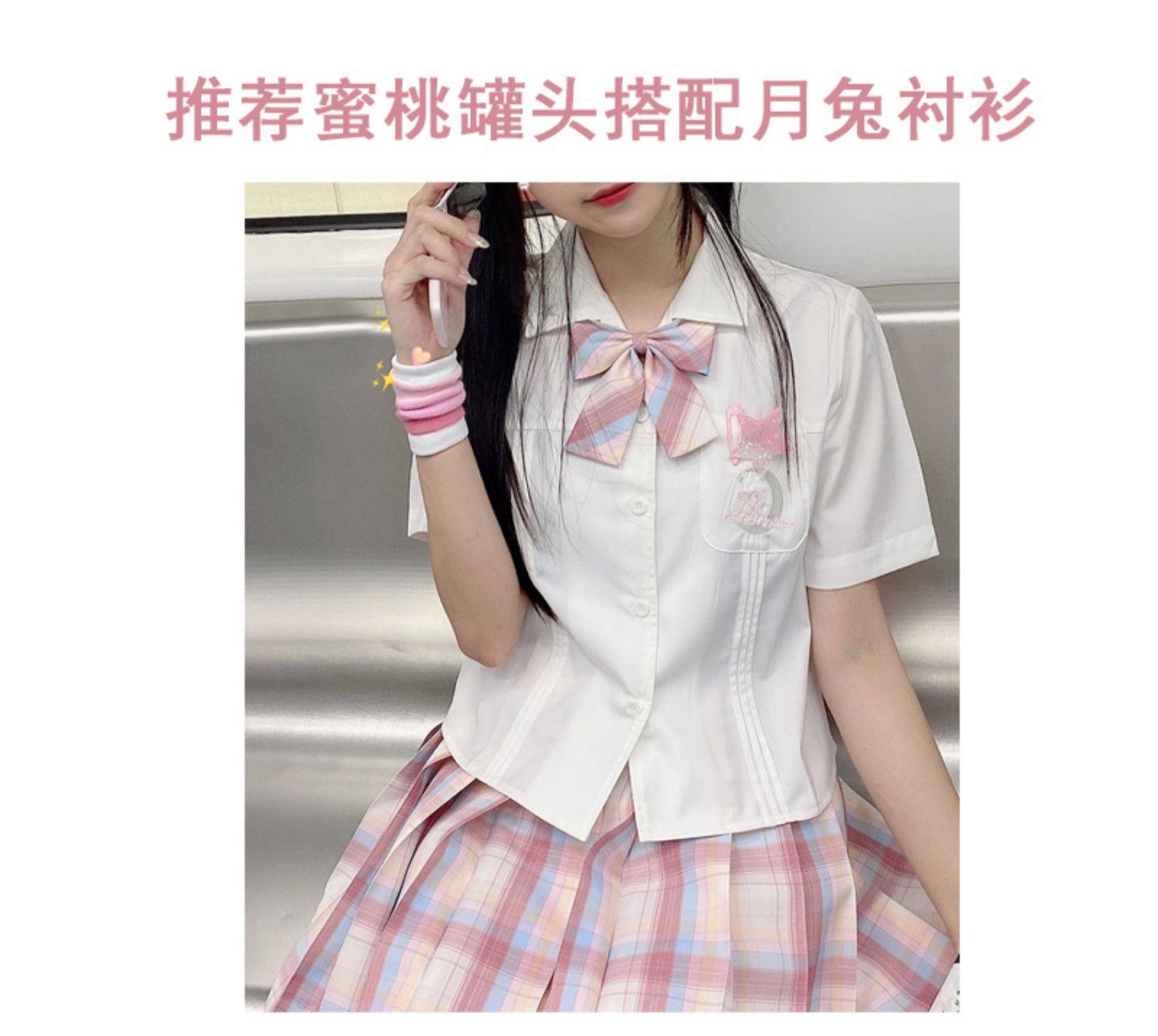 【Бессмысленность】Оригинальный летний JK версия Юбка серебряная линия персики консервированная девушка порошок товар в наличии