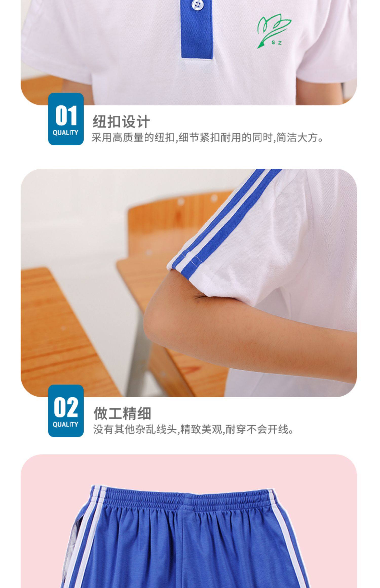 Темно Шэньчжэнь Унифицированная школьная служба платья начальная школа летняя спортивная одежда комплект Быстрые сухие анти-вонючие брюки короткий рукав шорты
