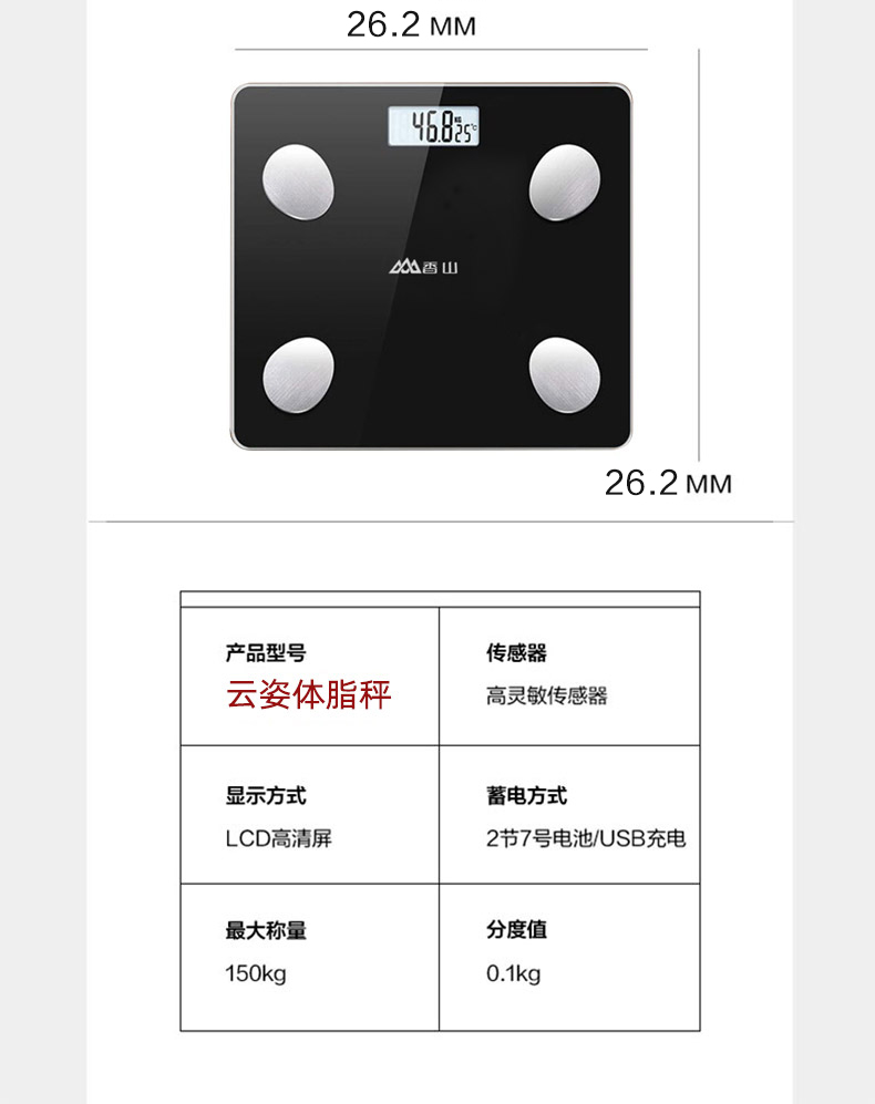 Xiangshan Electronic Scale Главная Вес Оценка Прецизировка Взрослый Жир Жир Зарядная Интеллект синий Детологическая шкала женский общежитие