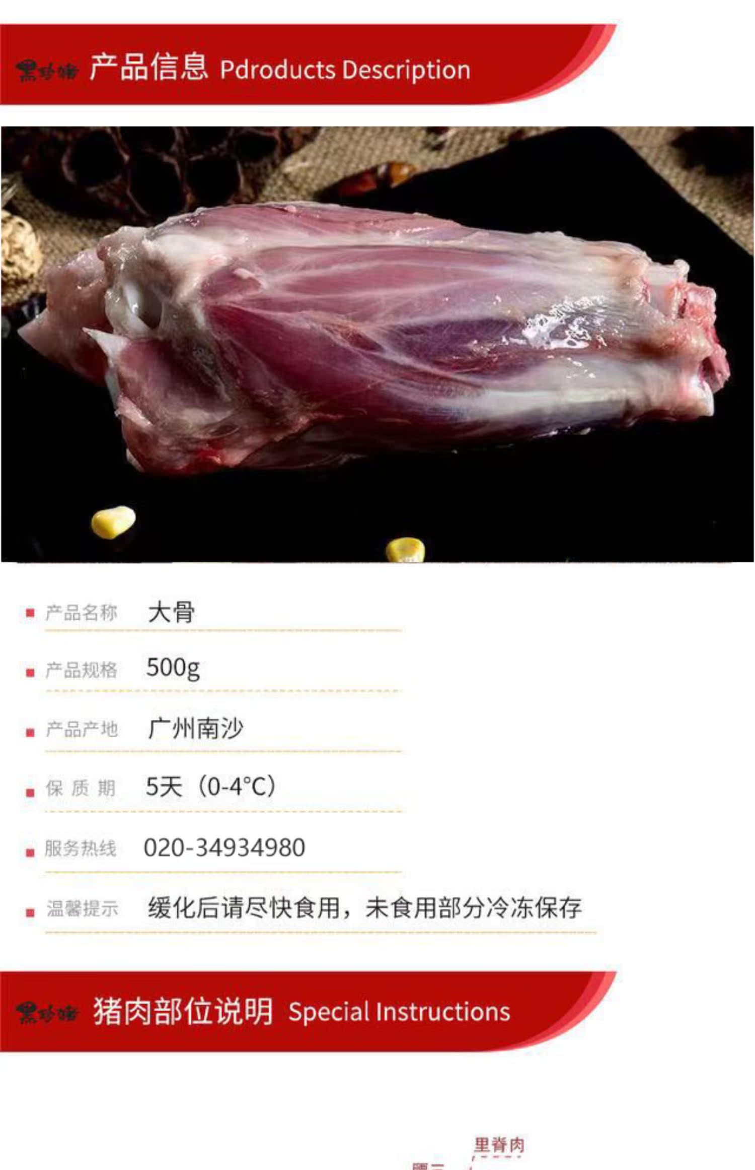 Dongsheng Farm Dongsheng черный Чжэнь свинья кости Гуанчжоу мясо 500 г