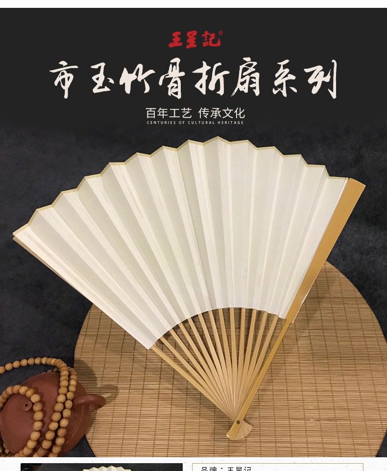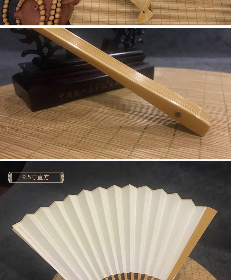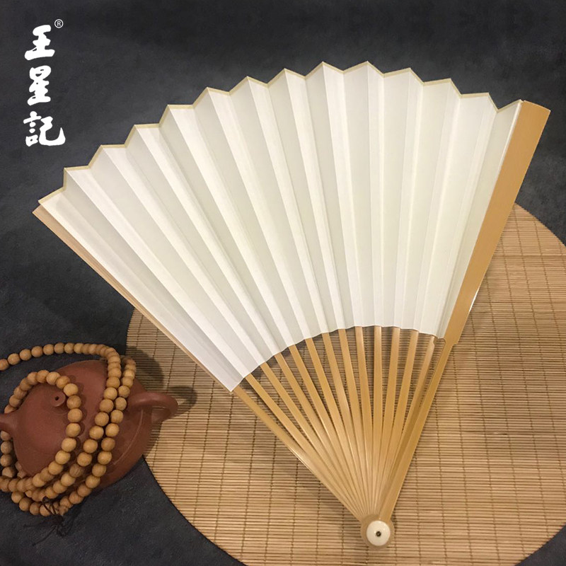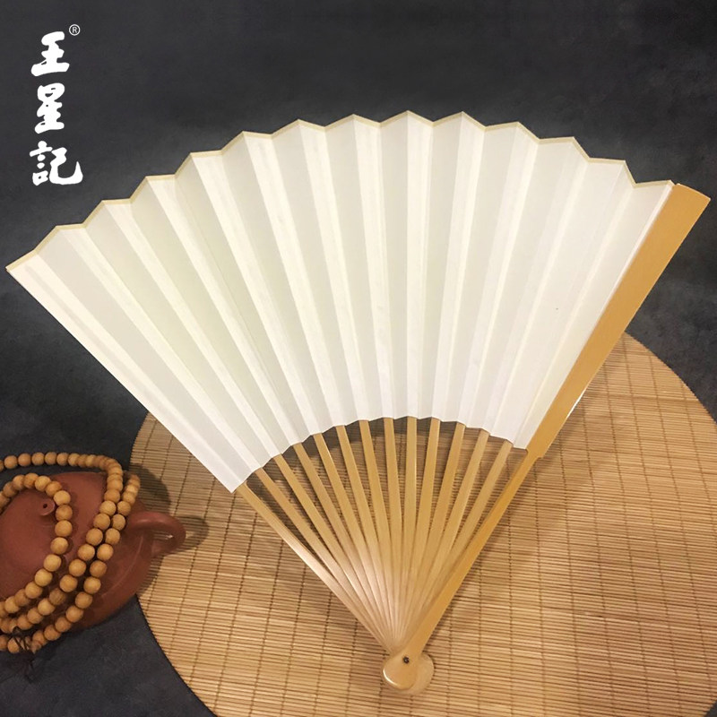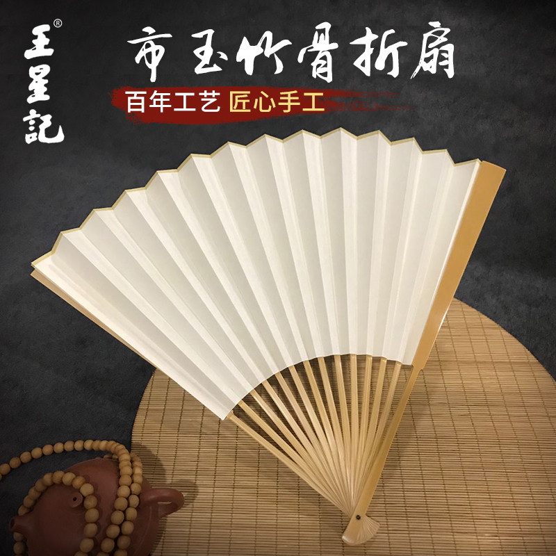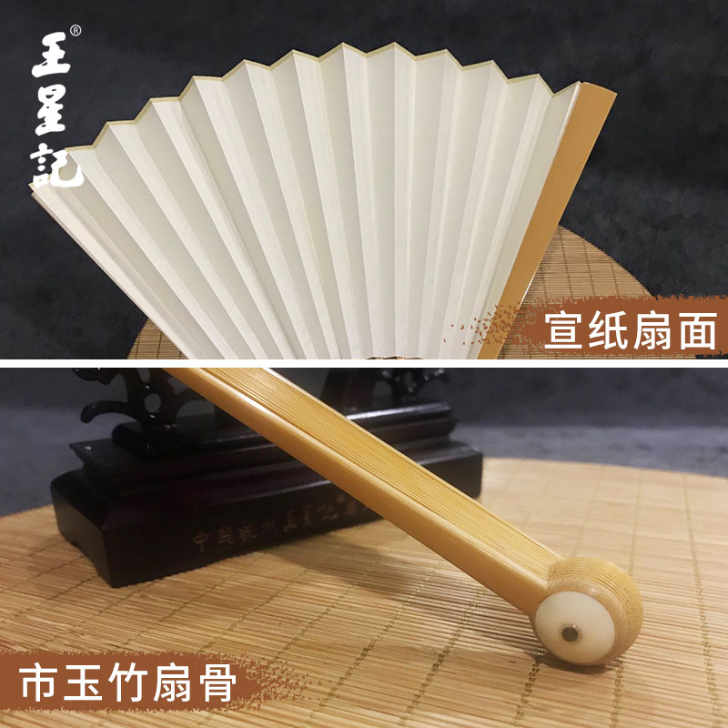 Ван Xingchang 9,5 дюйма города Джейд Бамбука белый белый Бумажный вентилятор Китайский ветер ветер ветер мужской Подарочный вентилятор ремесло бумаги вентилятор