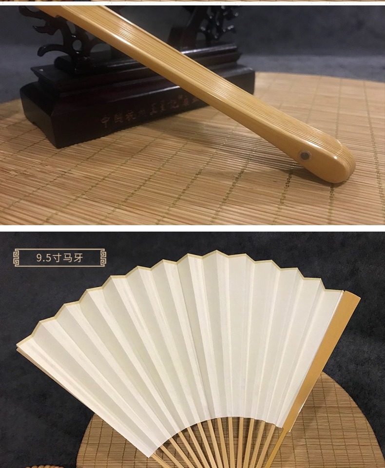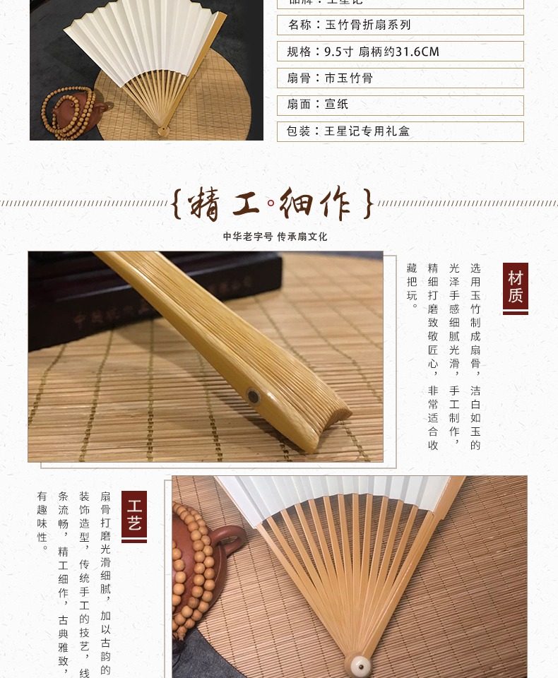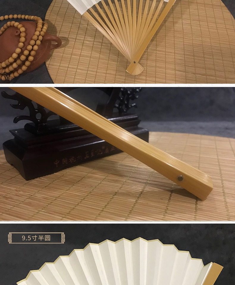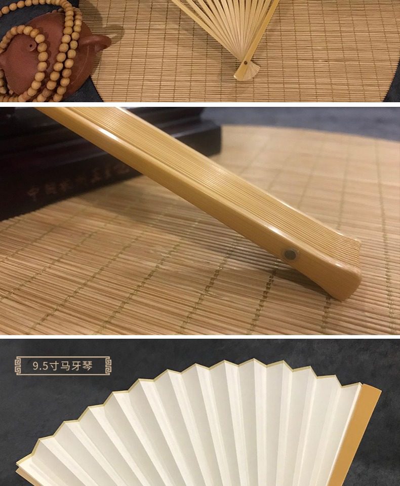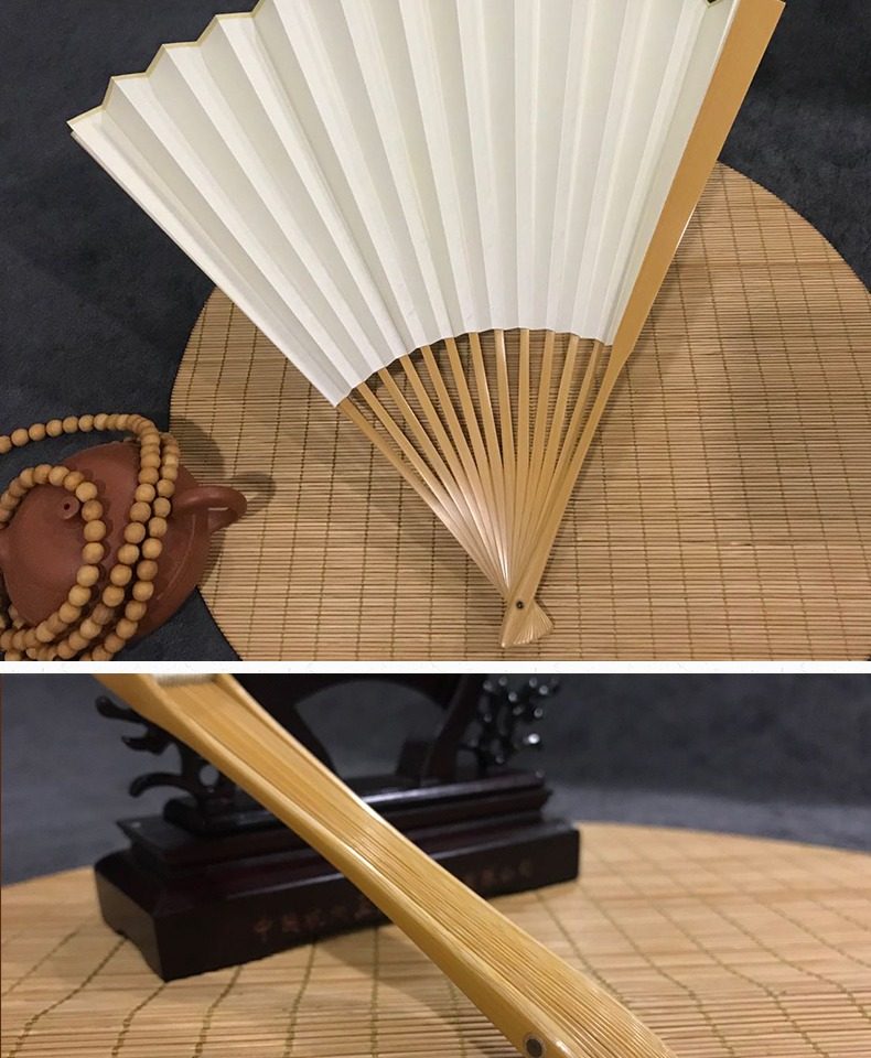 Ван Xingchang 9,5 дюйма города Джейд Бамбука белый белый Бумажный вентилятор Китайский ветер ветер ветер мужской Подарочный вентилятор ремесло бумаги вентилятор