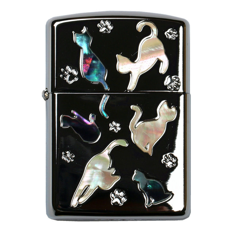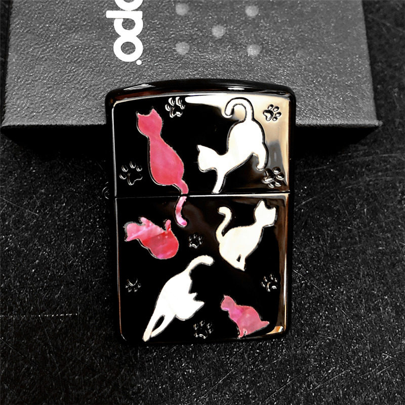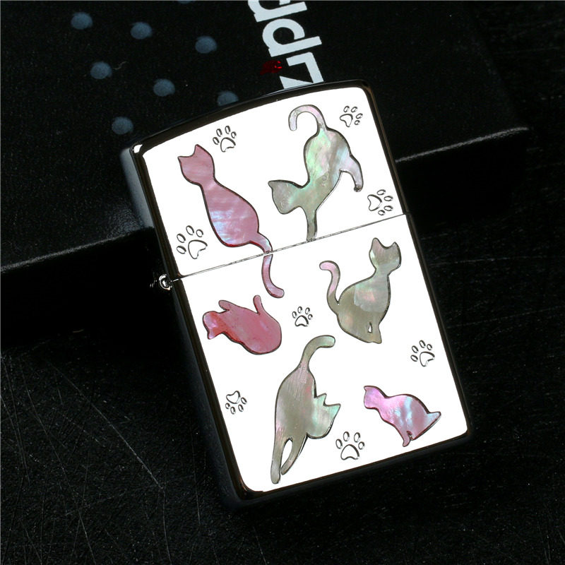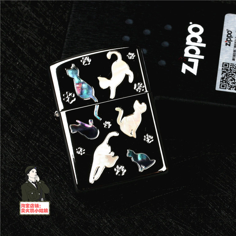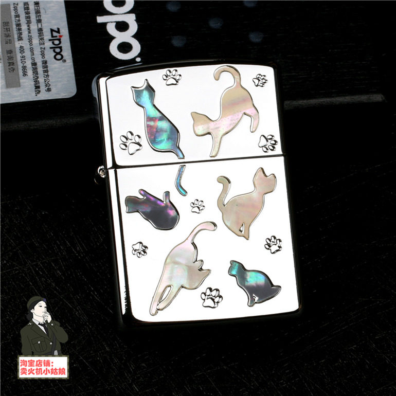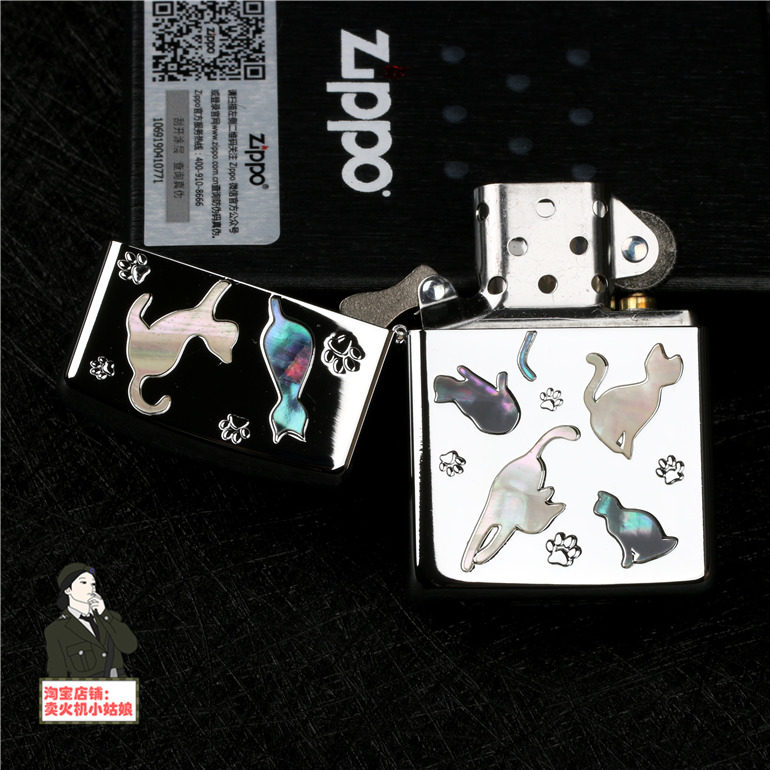 Оригинал Zippo Zhi Baobao. зеркало Квадратная хрома встроенная натуральная раковина милый кот
