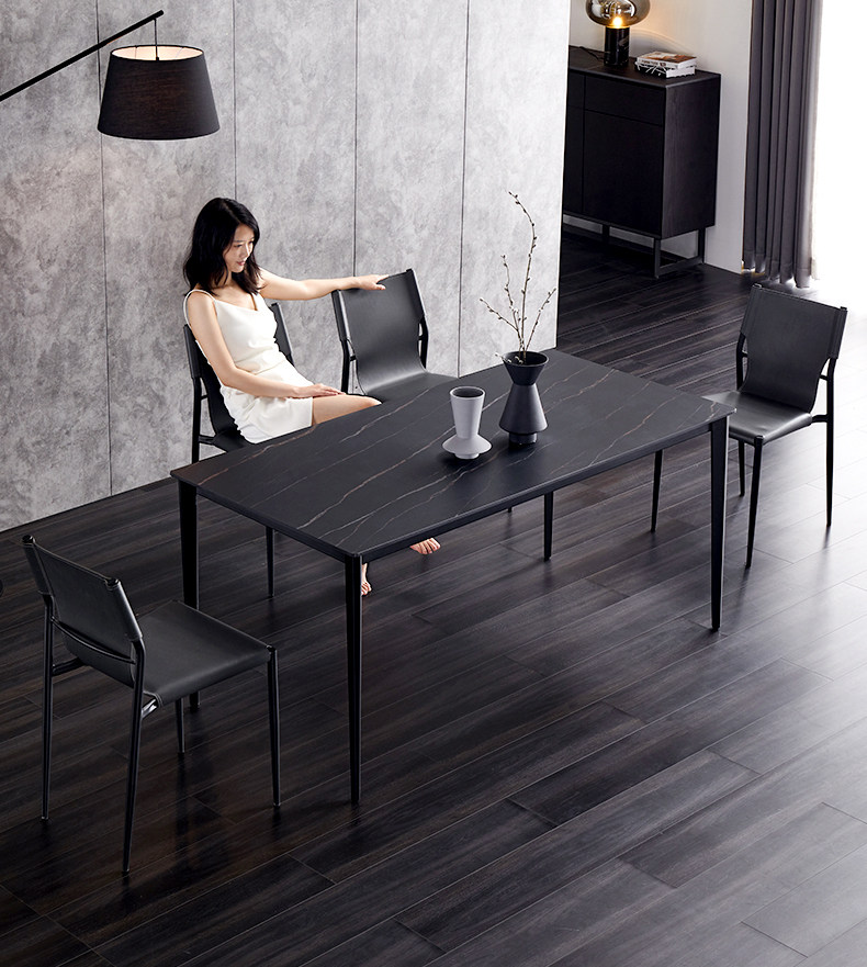 Итальянский рок панель Прямоугольный обеденный стол поколение Обеденный стол для дома в небольшой квартире, роскошный обеденный стол и стул в северном свете