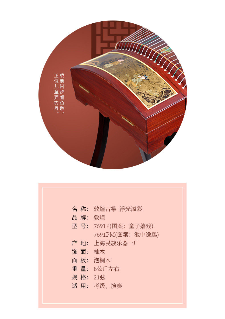 Dunhuang Guzheng 7691P Teak плавающий переполнение цвет Мальчик игривый играть новичков тест Дунхуанг бренд гуженг музыкальный инструмент