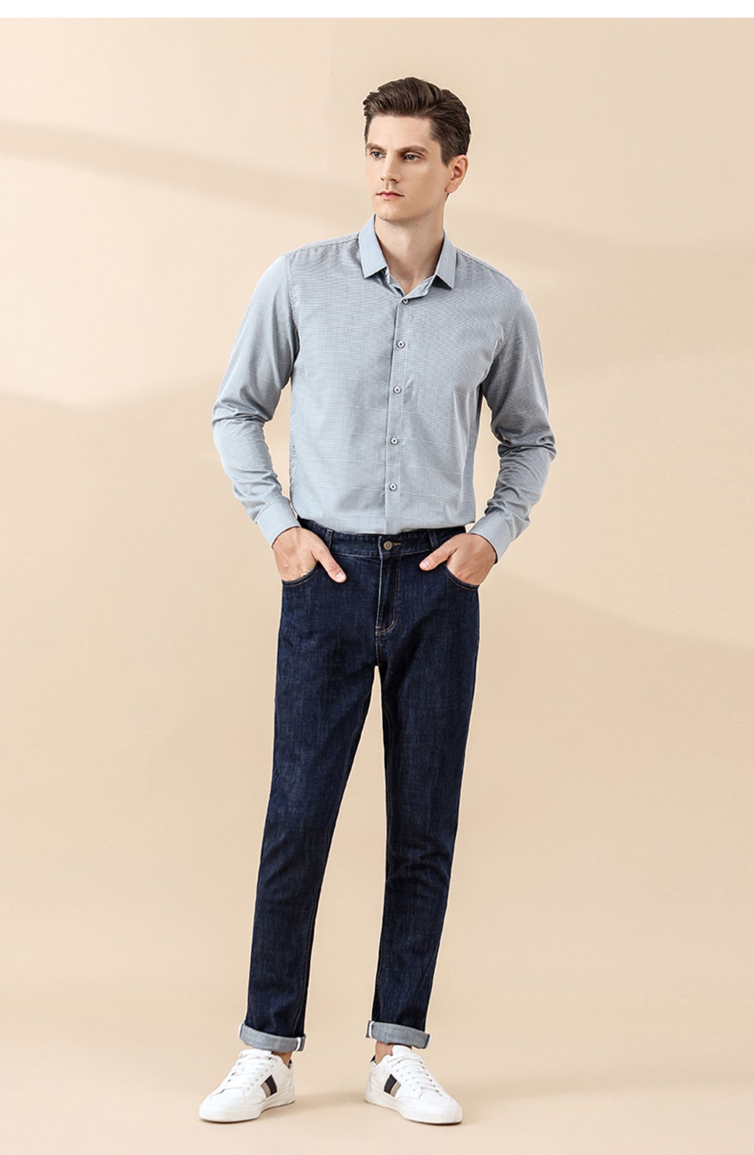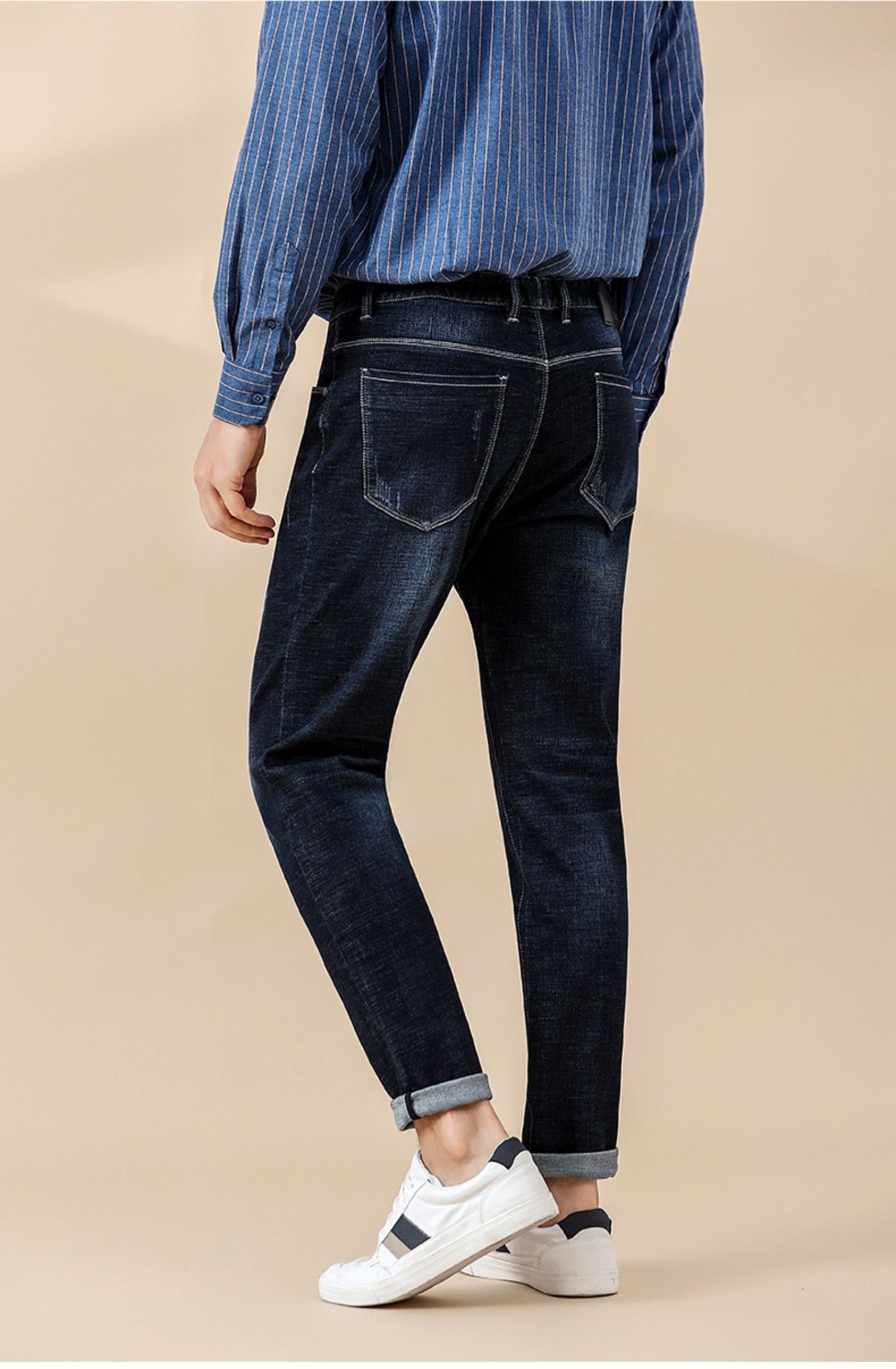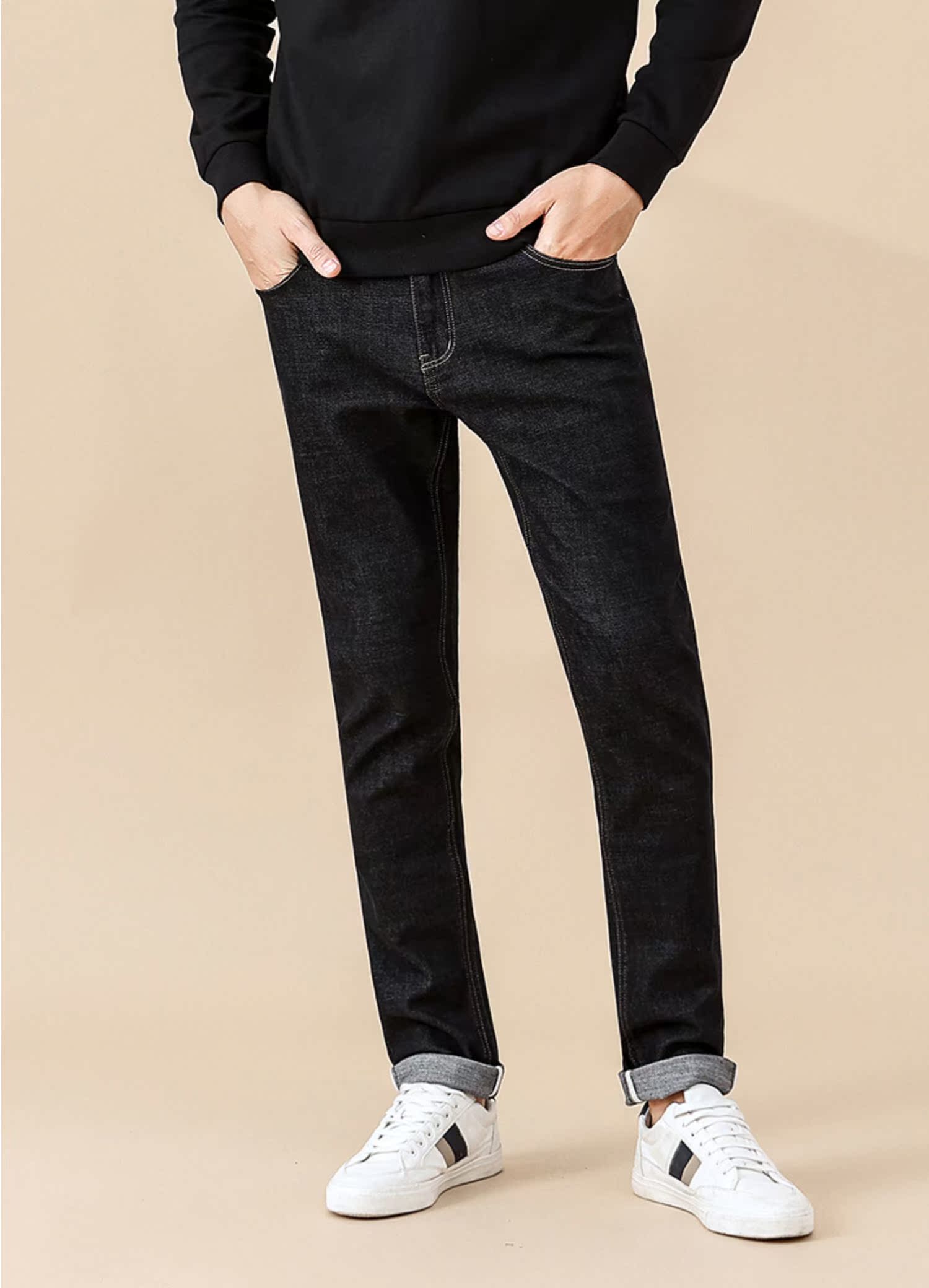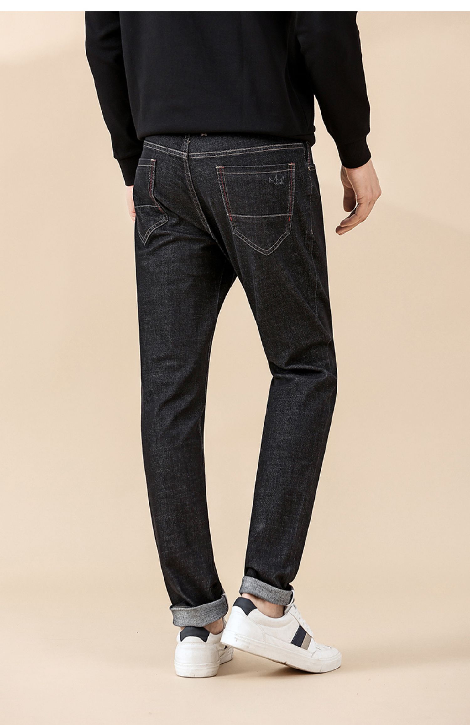 Красный боб мужской осень-зима высокая хлопок эластичные джинсы Комфортный винтаж для отдыха прямые приталенный сигарета серый замшевый штаны