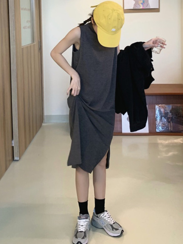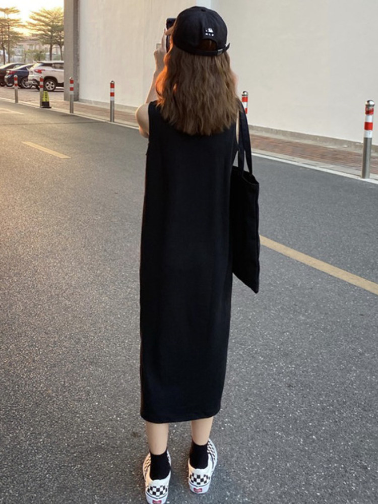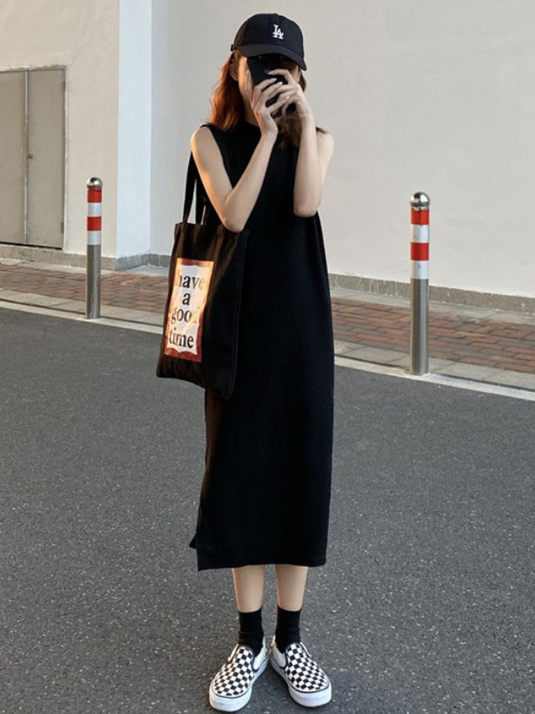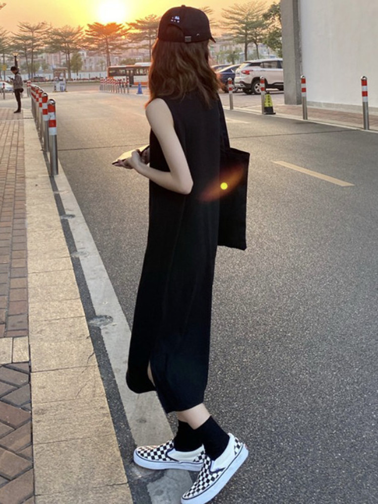 Без рукав черный Платье женское лето 2021 лето новая коллекция для отдыха длинный фасон Юбка-камзол летняя нижняя юбка