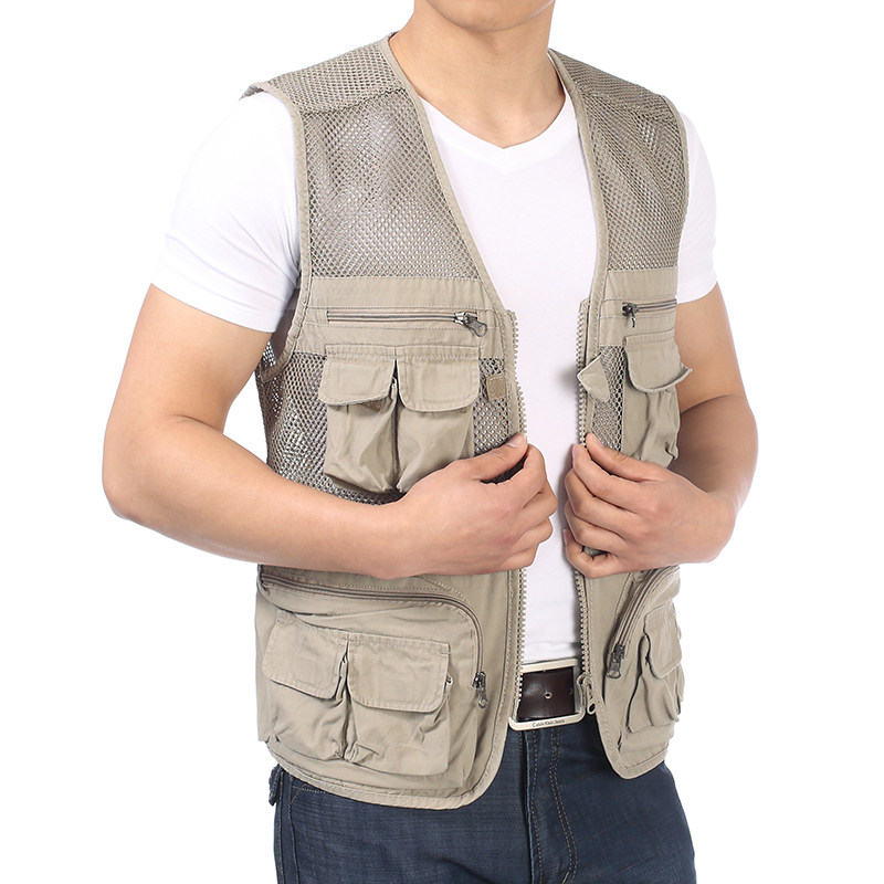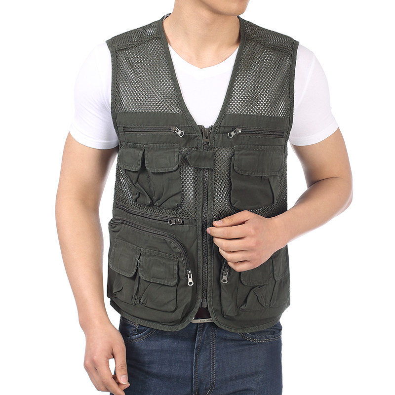 Мужской Лето тонкий стиль хлопок Жилет куртка Рыболовная фотография среднего возраста папочка сумка плечевой сети