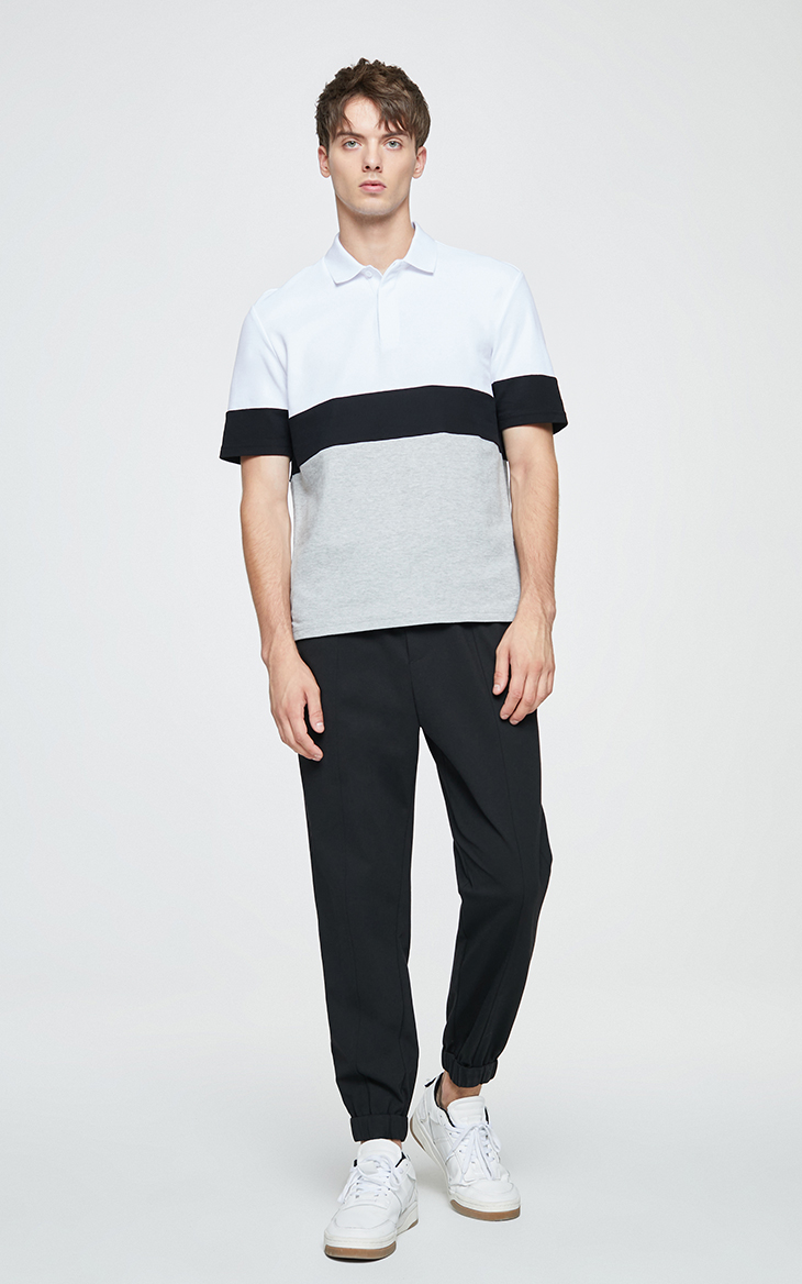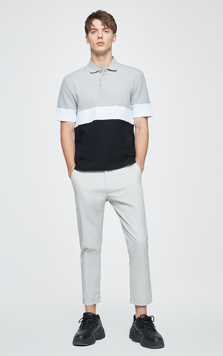 2020 новый товар новинка модные чистый хлопок Отворот на плече с геометрическим узором в стиле колор-блок короткий рукав Футболка