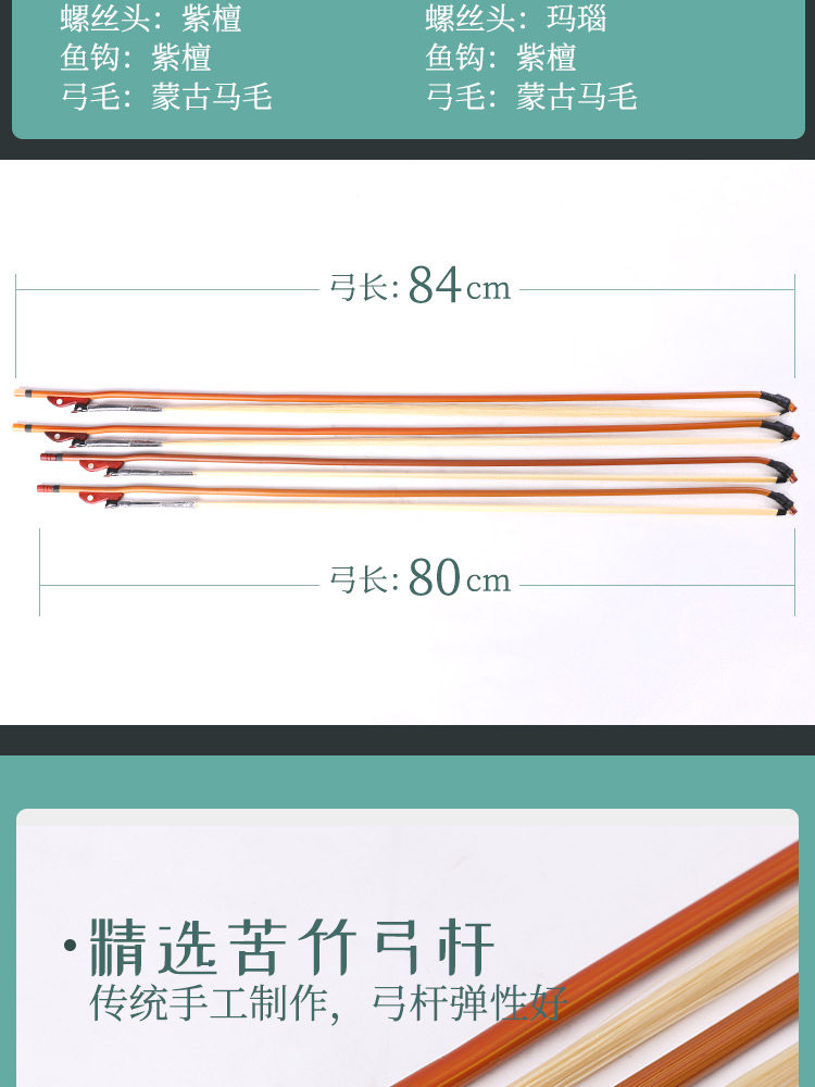 Верх Смычок Haiwuyue Erhu и смычок фортепиано полосатый принт Профессиональная лошадь хвост Лук аксессуары белый лошадь хвост Волосатая деревянная рыба из розового дерева 8084CM