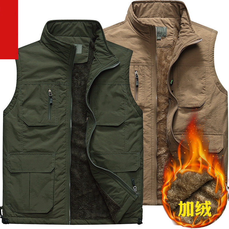 Замшевый толстая Жилет мужской Жилет среднего возраста мужской многие с карманами Рыбалка фотографии Держатель лошади