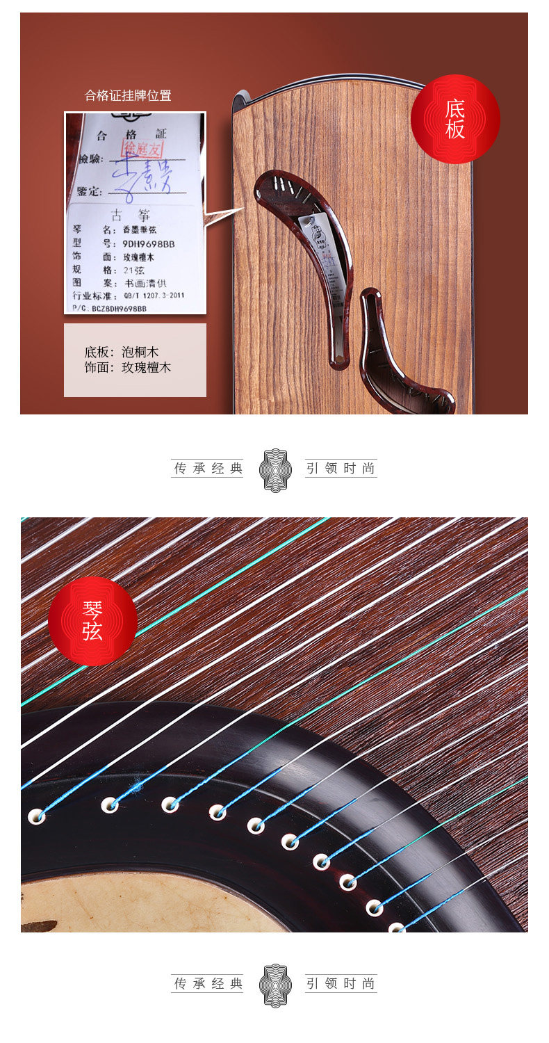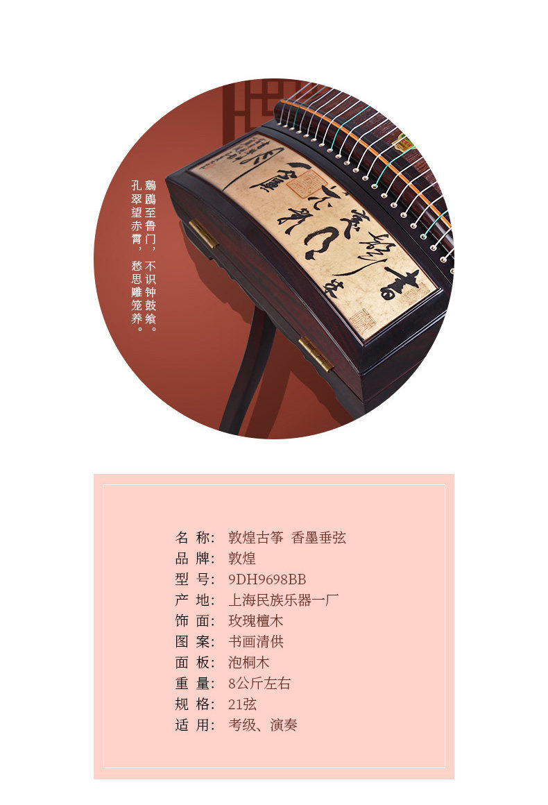 Dunhuang Guzheng 9DH9698BB чернила чернил струны и роспись окраски роза Sandalmun Huihuang бренд Guzheng национальный инструмент