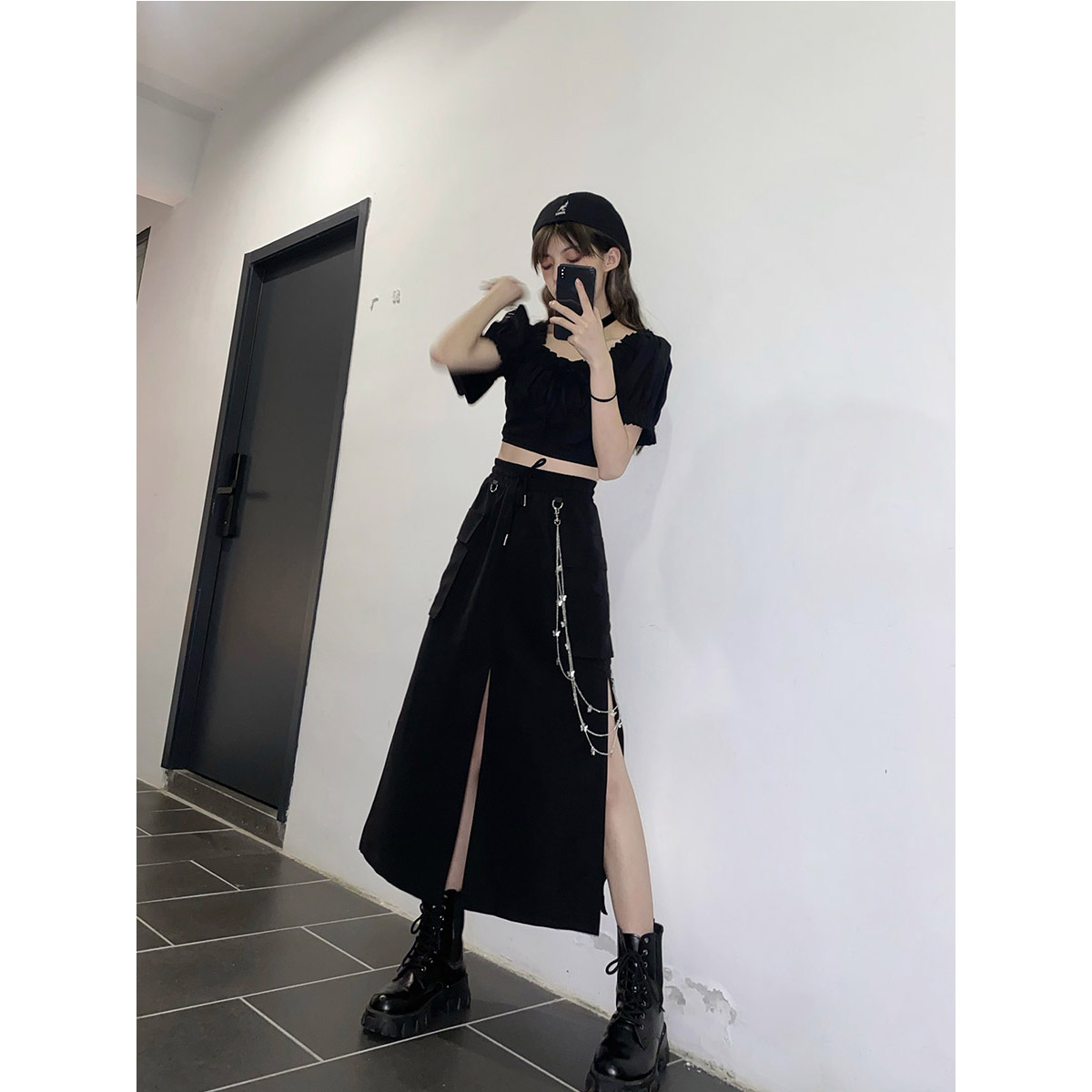 Matsumoto. черный высокая Вилка, юбка фасон средней длины стиль 2021 лето новая коллекция высокая Талия А. слово Половина длиной платье