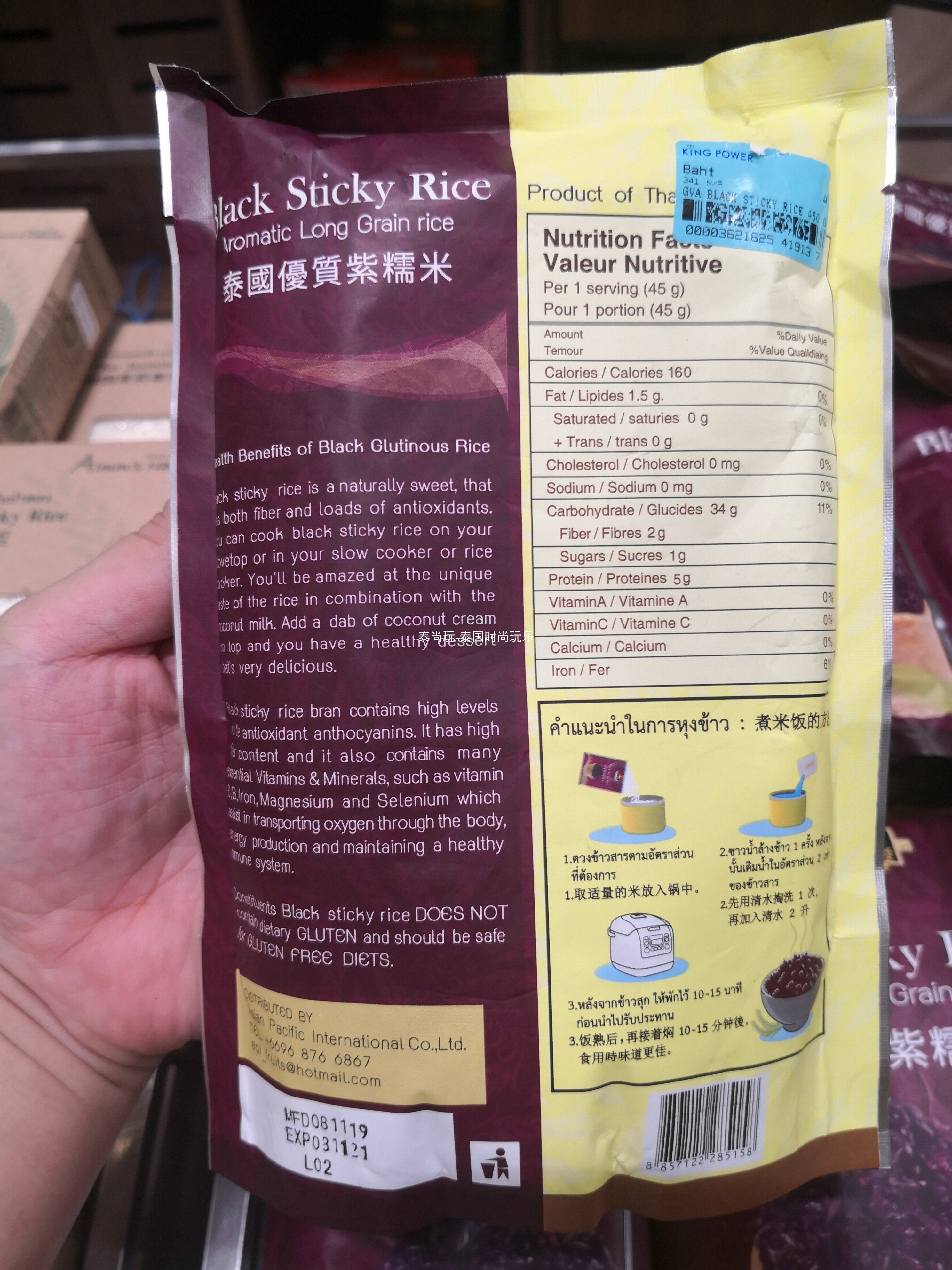 Таиланд Счастливый долина Черный липкий рис черный 450 г фиолетового клейкого риса. новый дата.