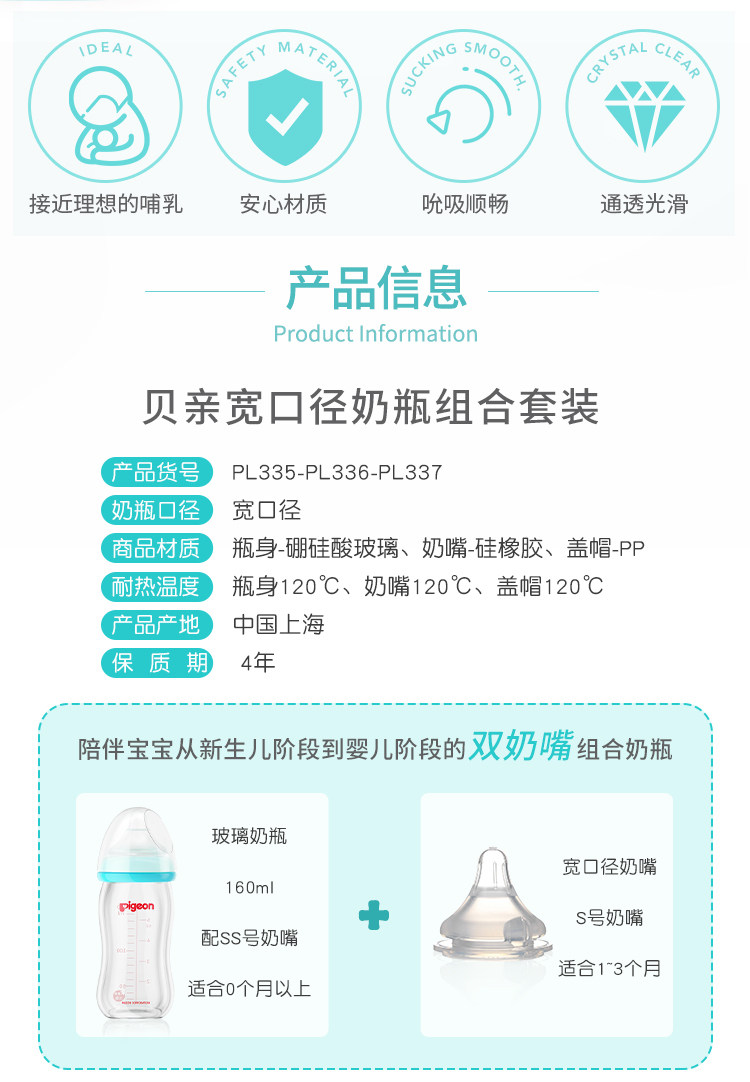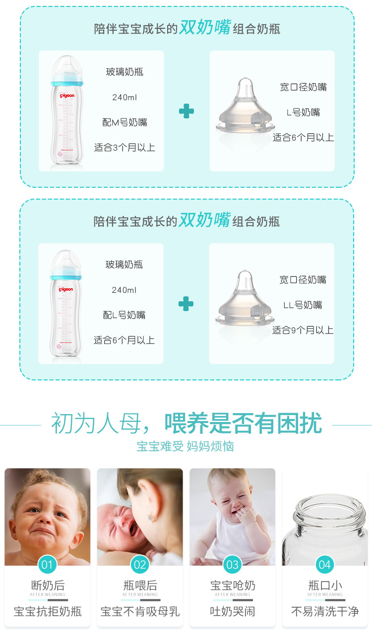 Голуби на младенца Широкий калибр стеклянный бутылка 240 мл детские Натуральный смысл соску комплект L/LL Pacifier