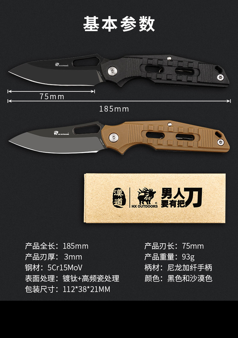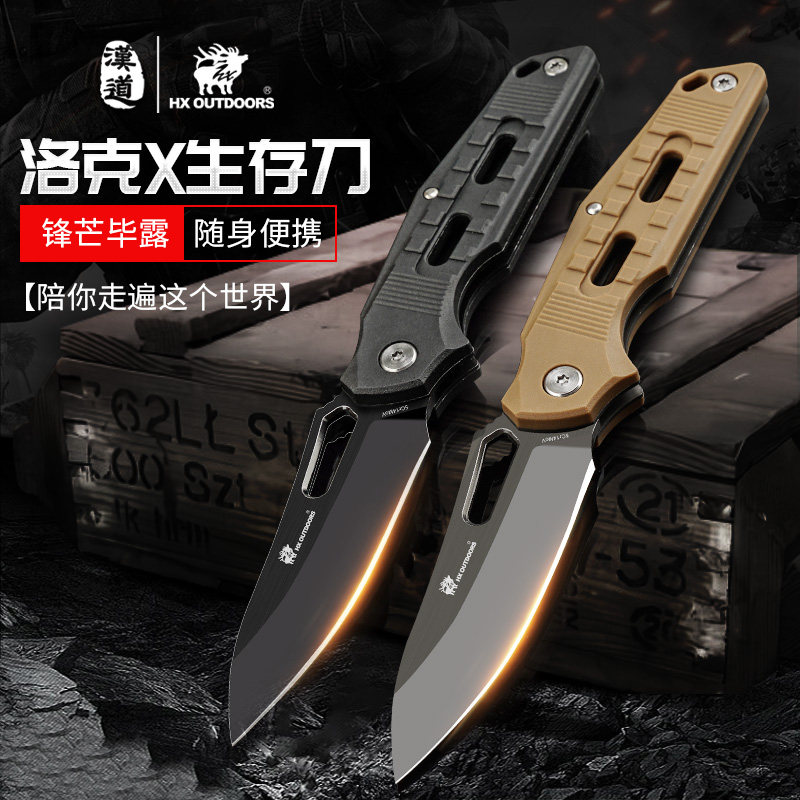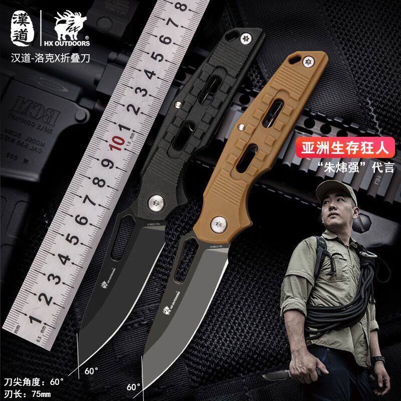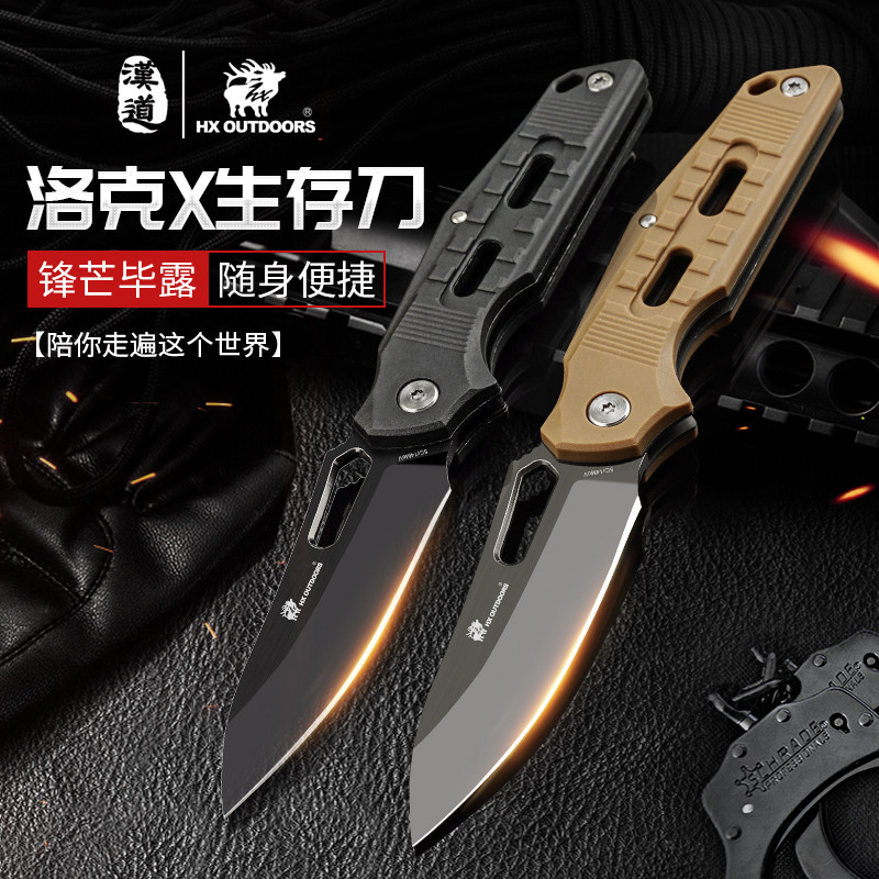 Han Dao. со складыванием Нож на открытом воздухе Инструмент самообеспеченный нож Дикая выживание выживание нож тактики армейский нож нож острый портативный