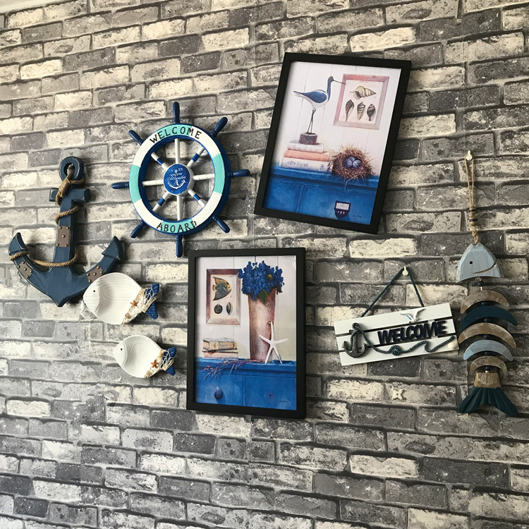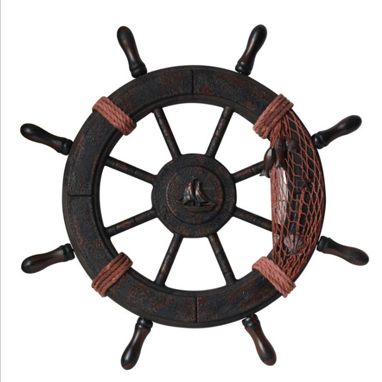 Nordic винтаж Старый деревянный рулевой железом железом украшения средиземноморской стены висит настенные стены висит фон орнамент стены