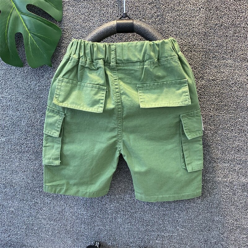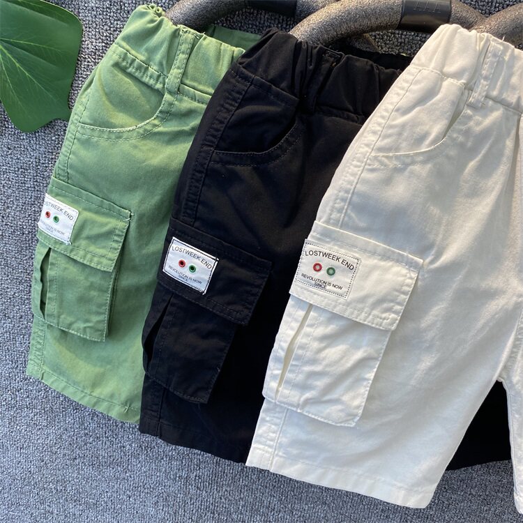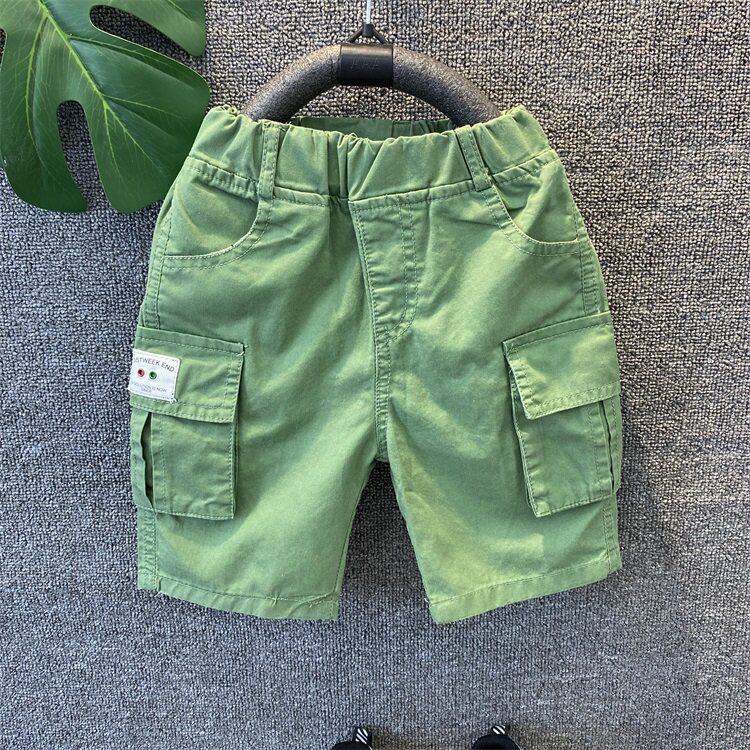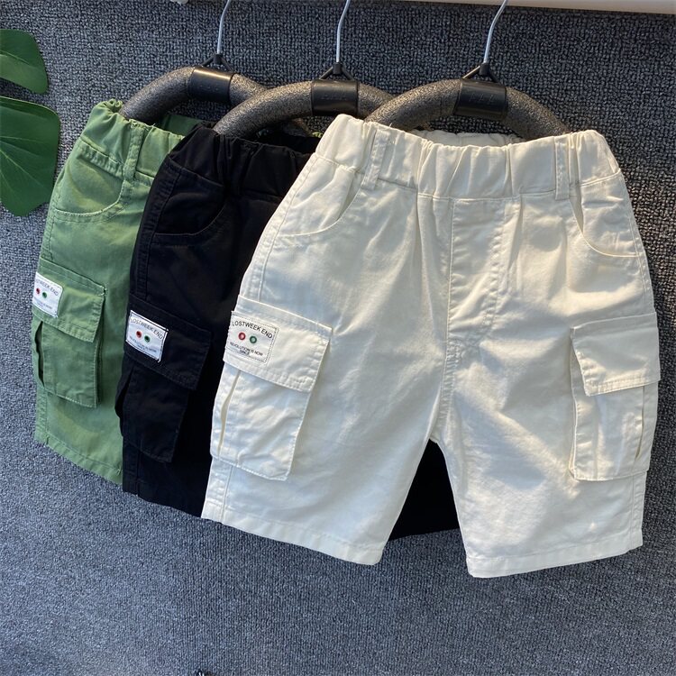 Детское детские Шорты летние тонкие стиль чистый хлопок Штаны корейская версия Детские 5 брюк для колена корпус приносить с карманами Штаны 5.
