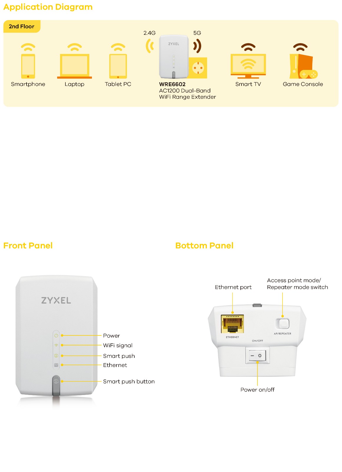 Zyxel Souvenz AC1200M Qizhao частота без Линия WiFi Experder / AP Двойной режим Многотазовая вилла Высокая мощность Усилитель на стене Усилитель сигнала Доверие WPS One-Click Connection Connection WRE6602