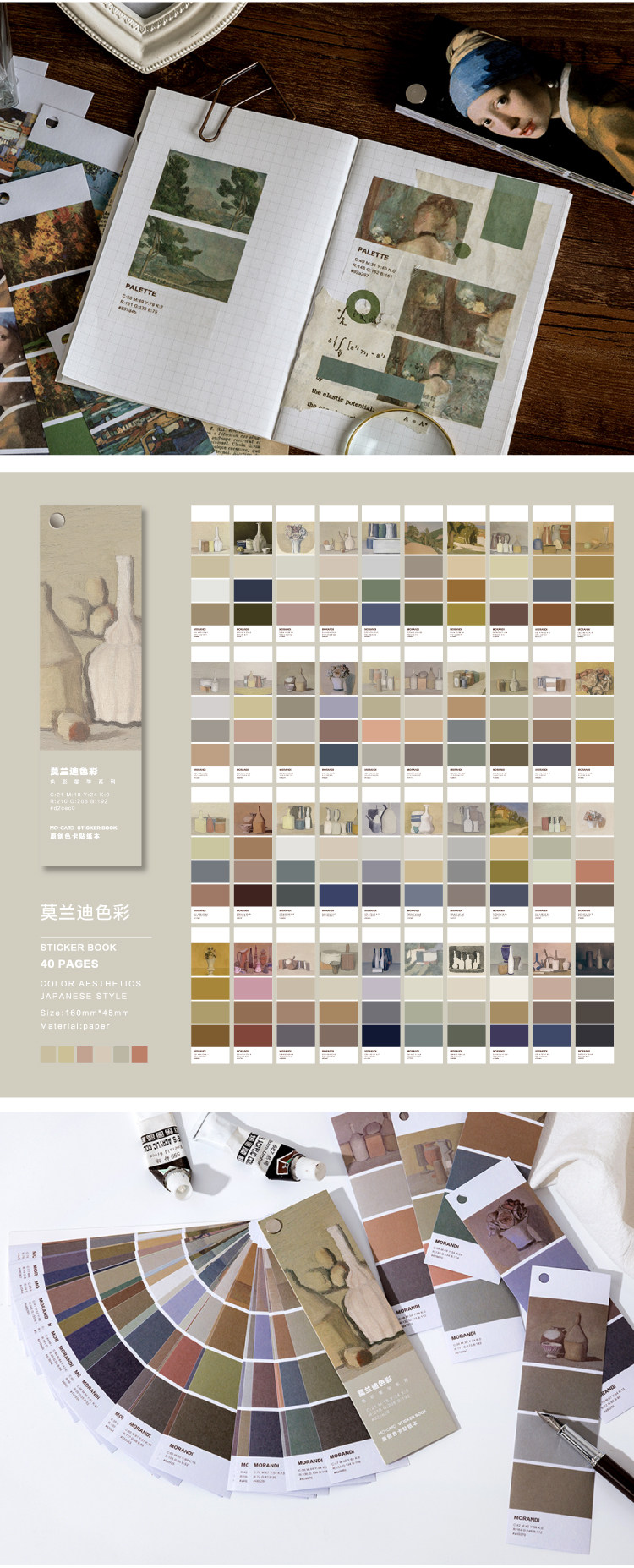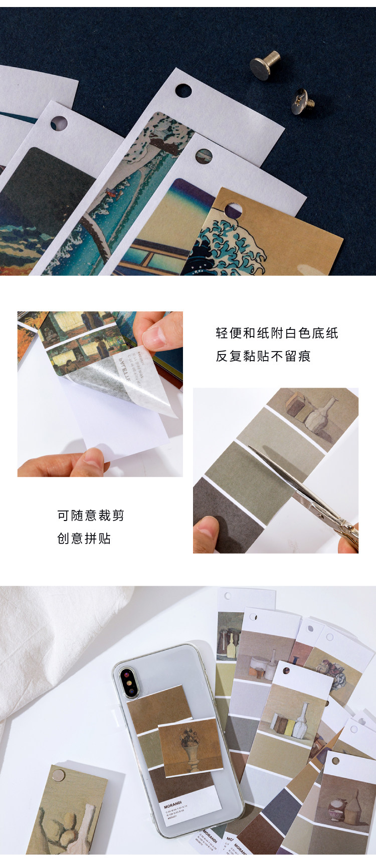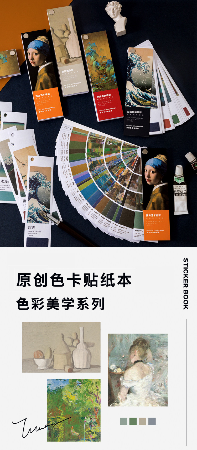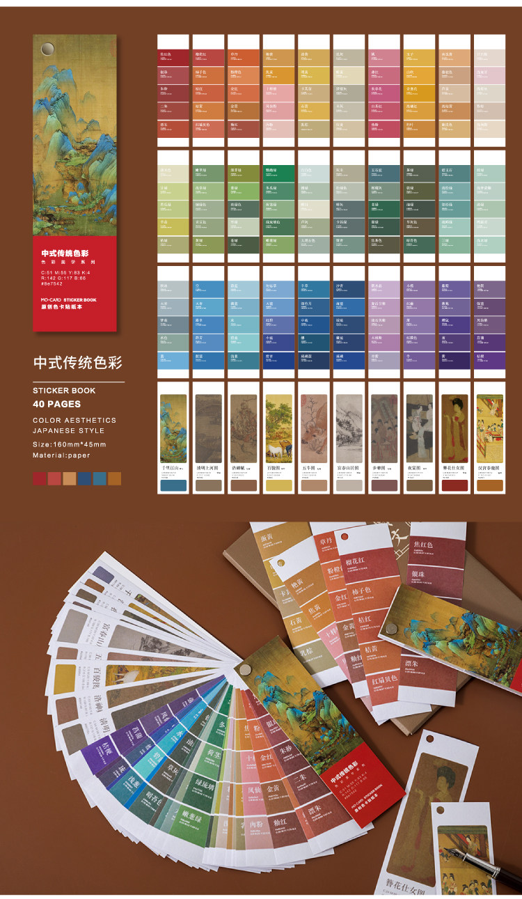 Стикер руководства комплект цвет цвет Эстетические серии Древняя ветряная карта наклейки это Моранди Искусство знаменитая картина Японские литературные ins стиль творческий ручной аккаунт украшения дневника альбома DIY для Стикер