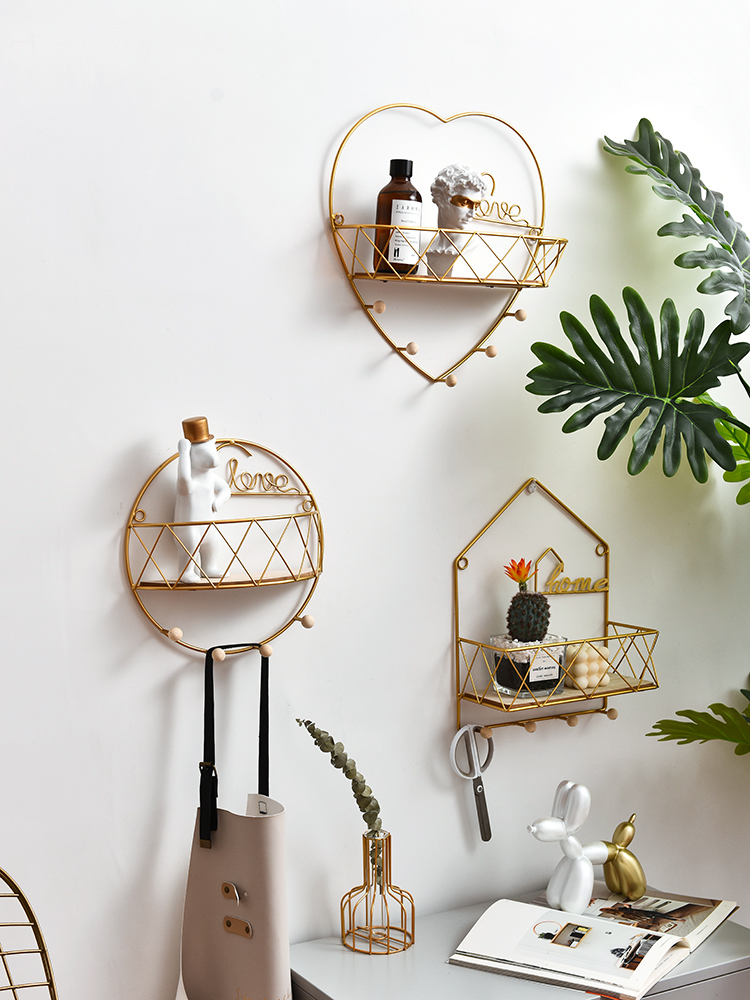 Стена без перфорации верх Полка креативная спальня гостиная стена кованая настенная корзина настенная стойка для хранения косметики