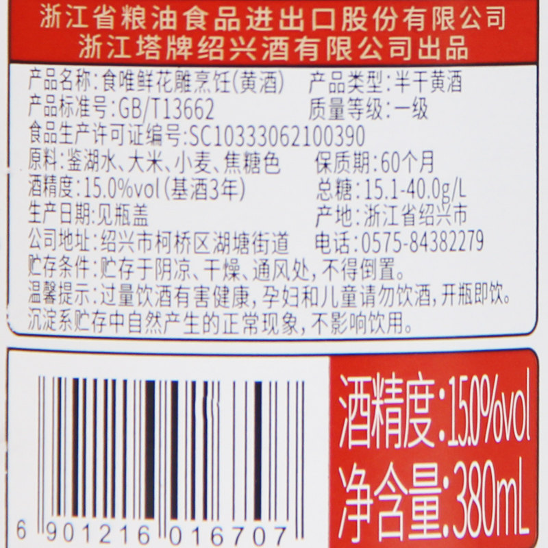 Еда свежее приготовление пищи цветов ручная работа Shaoxing Rice Wine 380 мл