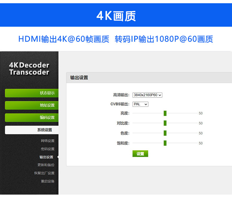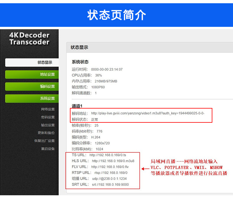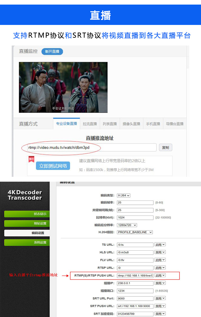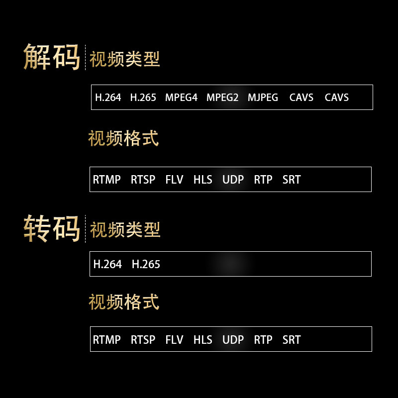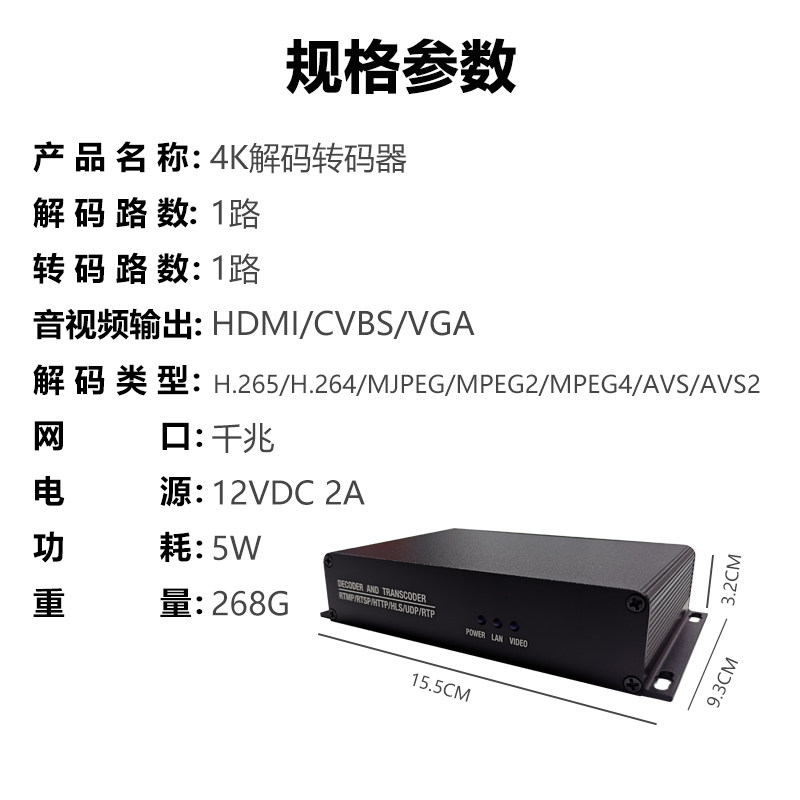 4K 60fps рамка частота Decoder Transcoder поддерживает RTMP RTSP AVS AVS + Trans RTMP SRT